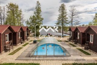 На территории участка расположена баня с финской сауной из сруба. Полы керамические с обогревом, сан. узел с душевой. При необходимости можно обустроить баню со спуском в пруд, так как она находится на самом берегу. На участке возведен гараж на 3 машиноместа, с техническим помещением под газовое оборудование, обеспечивающее газоснабжением всех построек. Так же, в гараже предусмотрено помещение для хранения мототехники с отдельным въездом. Выполнена стяжка пола с обогревом, предчистовая отделка. Так же, на участке в стадии строительства находятся: летняя кухня, которая может функционировать зимой, и чаша круглогодичного бассейна. Стены кухни и гаража из керамического кирпича с облицовкой клинкерным кирпичом в едином стиле с домом. В чаше бассейна выполнена частичная обвязка труб и устройство строительных отверстий для подвода водоснабжения, водоотведения. На все объекты есть проекты.