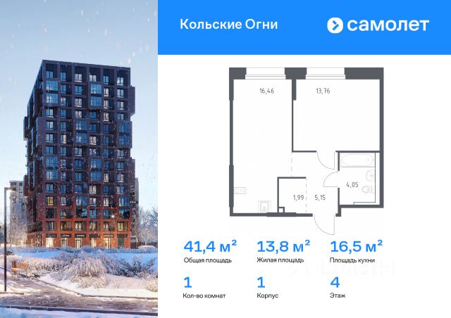 Строим кварталы для жизни с заботой о будущем. Предлагается 1-комнатная квартира комфорт-класса 40,11 кв.м в корпусе 1 на 9 этаже, в ЖК "Кольские Огни" Квартира без отделки. Доступность опции "отделка" и возможность комплектации мебелью и декором уточняйте у застройщика. Приобрести квартиру возможно по специальным акциям от застройщика, с текущими условиями акций можно ознакомиться в блоке "Акций". Цена динамическая и может отличаться, уточняйте актуальность у застройщика. Жилой комплекс "Кольские Огни" будет построен в Мурманской области, в городе Кола. Путь до центра Мурманска будет быстрым — всего 25 минут на машине. Рядом — Поморская набережная, парк, тундровый сад и лес всего в 10 минутах пешком. На первых этажах домов откроются кофейни и магазины, фитнес-зал и салон красоты, аптека, пункты выдачи заказов. Рядом с жилым комплексом работают детский сад, спортивная школа с бассейном и ФОК. Во дворе — озеленение, спортивные площадки, ремонт велосипедов, догхабы. Еще на территории квартала построим паркинг с зарядкой для электромобилей. Корпуса высотой 912 этажей и 1417-этажные башни украшают деревянные панели. На входе в подъезды не будет ступеней и высоких порогов. После прогулки велосипеды и коляски можно оставить в местах хранения. Продуманные планировки от небольших студий до просторных 4-комнатных квартир. Отделка на выбор: готовая, White Box или вариант без нее. Выбирайте варианты без отделки, если хотите реализовать собственные решения. Купить 1-комнатную квартиру до 6 млн. рублей в Коле.