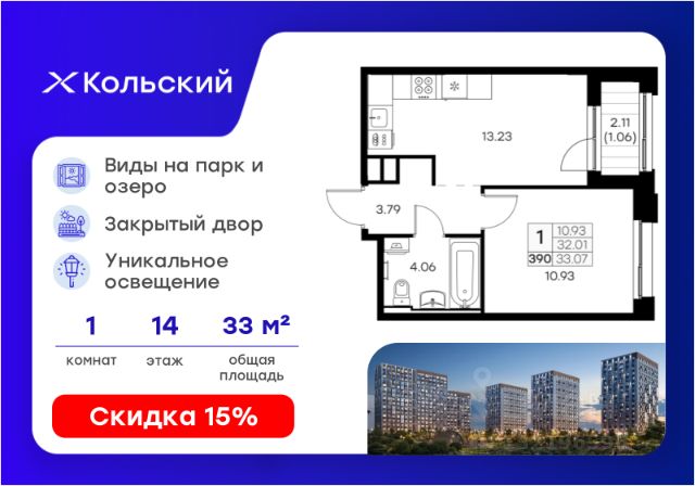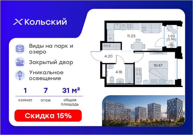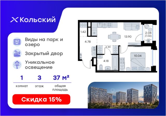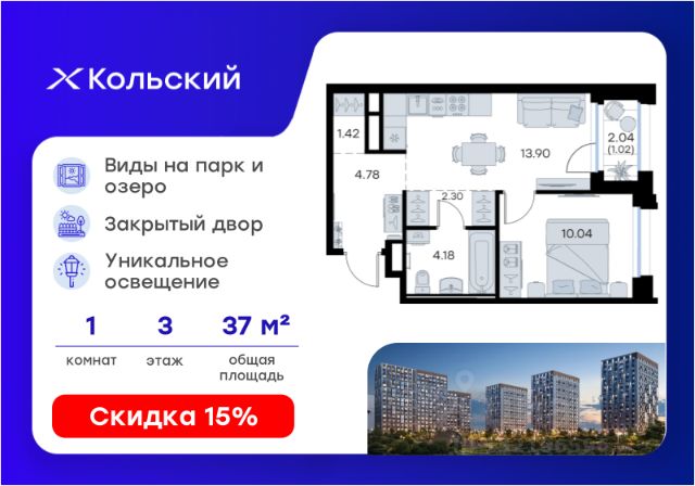 Продается 1-комн. квартира на 3-м этаже в проекте комфорт-класса Кольский. Общая площадь лота составляет 34,39 кв. м, из которых 10,92 кв. м отведено под жилую и 13,75 кв. м под кухонную зону. Номер квартиры - 21. Преимущества квартиры: компактная евро-2; лоджия. - Масштабный проект комфорт-класса в зеленой локации - Лаконичная современная архитектура - Закрытая территория с видеонаблюдением - Квартиры с евро-планировками - Система "Умный дом" - IP-видеонаблюдение, free Wi-fi на территории - Детские разновозрастные площадки - Парк и озеро рядом с домом - Комьюнити-центр для жильцов Кольский — новая точка притяжения на карте Мурманска. Проект, который рожден на границе городского и природного, современного и вечного, уюта и великой северной силы. Мы создаем совершенно новое пространство для жизни: с видом на Варничное озеро, вблизи Долины Уюта, среди ландшафтов, в которых слышен голос Севера. Отсюда всего 10 минут на транспорте до центра города. Рядом — школы и детские сады, поликлиника, фитнес-центры и торговые комплексы. Поблизости — крупнейшие спортивные объекты Мурманска: легкоатлетический манеж, ледовая арена, горнолыжный склон и маршруты для скандинавской ходьбы. Мы проектировали дома, опираясь не только на эстетику, но и на климат, свет, направление ветра и рельеф. Это архитектура, которая не спорит с ландшафтом, а продолжает его сдержанно, точно и со вкусом. Фасады лаконичны, но выразительны. Материалы выбраны с учетом суровых условий Заполярья: устойчивые к ветру, снегу, перепадам температур. Но при всей практичности они не теряют визуальной легкости. Дом здесь словно вписан в северную линию горизонта — сдержанную, но бесконечно живую. Концепция благоустройства построена на идее "светового компаса": динамичная подсветка реагирует на смену суток и сезонов. Утром она бодрит, вечером — успокаивает, зимой создает акценты, имитируя северное сияние. Функциональность поддержана геопластикой: детские и спортивные площадки расположены на разных уровнях, словно террасы, спускающиеся к парку. Каждая из них спроектирована с учетом возраста, сценария и рельефа. Здесь есть зоны для малышей, подростков, воркаут-комплексы, настольный теннис, места для йоги и тихого отдыха. А в зимние месяцы склоны превращаются в естественные тюбинговые трассы. Но главное — парк. Долина Уюта — это не "рекреационная зона рядом". Это часть жизни, открытая с утра до вечера. Здесь бегают, выгуливают собак, катаются на лыжах и устраивают праздники. Проект вобрал лучшее из многолетнего опыта компании GloraX: лаконичная современная архитектура, закрытые дворы, продуманные сценарии освещения, вдохновленные полярными сутками, экологичный ландшафт и умный подход к комфорту. Кольский — для тех, кто влюблен в Север. И для тех, кто готов в него влюбиться. Цена указана при 100% оплате или стандартной ипотеке. Узнайте подробности в Отделе продаж. Продам 1-комнатную квартиру до 8 млн. рублей в Мурманской области.