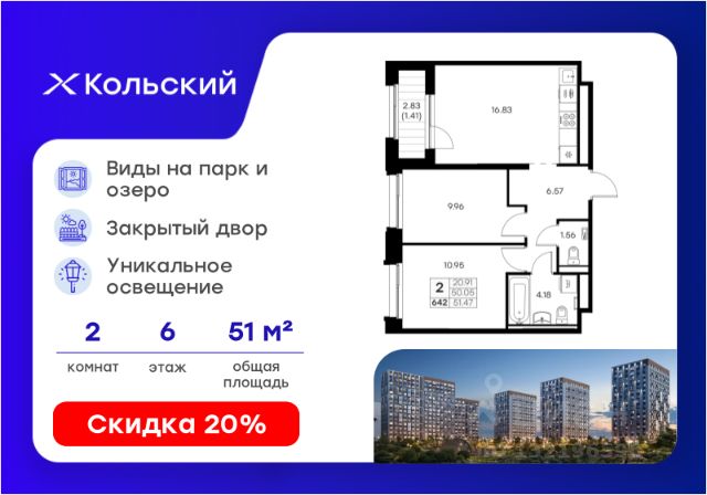 Продается 1-комн. квартира на 11-м этаже в проекте комфорт-класса Кольский. Общая площадь лота составляет 33,07 кв. м, из которых 10,93 кв. м отведено под жилую и 13,23 кв. м под кухонную зону. Номер квартиры - 354. Преимущества квартиры: компактная евро-2; лоджия. - Масштабный проект комфорт-класса в зеленой локации - Лаконичная современная архитектура - Закрытая территория с видеонаблюдением - Квартиры с евро-планировками - Система "Умный дом" - IP-видеонаблюдение, free Wi-fi на территории - Детские разновозрастные площадки - Парк и озеро рядом с домом - Комьюнити-центр для жильцов Кольский — новая точка притяжения на карте Мурманска. Проект, который рожден на границе городского и природного, современного и вечного, уюта и великой северной силы. Мы создаем совершенно новое пространство для жизни: с видом на Варничное озеро, вблизи Долины Уюта, среди ландшафтов, в которых слышен голос Севера. Отсюда всего 10 минут на транспорте до центра города. Рядом — школы и детские сады, поликлиника, фитнес-центры и торговые комплексы. Поблизости — крупнейшие спортивные объекты Мурманска: легкоатлетический манеж, ледовая арена, горнолыжный склон и маршруты для скандинавской ходьбы. Мы проектировали дома, опираясь не только на эстетику, но и на климат, свет, направление ветра и рельеф. Это архитектура, которая не спорит с ландшафтом, а продолжает его сдержанно, точно и со вкусом. Фасады лаконичны, но выразительны. Материалы выбраны с учетом суровых условий Заполярья: устойчивые к ветру, снегу, перепадам температур. Но при всей практичности они не теряют визуальной легкости. Дом здесь словно вписан в северную линию горизонта — сдержанную, но бесконечно живую. Концепция благоустройства построена на идее "светового компаса": динамичная подсветка реагирует на смену суток и сезонов. Утром она бодрит, вечером — успокаивает, зимой создает акценты, имитируя северное сияние. Функциональность поддержана геопластикой: детские и спортивные площадки расположены на разных уровнях, словно террасы, спускающиеся к парку. Каждая из них спроектирована с учетом возраста, сценария и рельефа. Здесь есть зоны для малышей, подростков, воркаут-комплексы, настольный теннис, места для йоги и тихого отдыха. А в зимние месяцы склоны превращаются в естественные тюбинговые трассы. Но главное — парк. Долина Уюта — это не "рекреационная зона рядом". Это часть жизни, открытая с утра до вечера. Здесь бегают, выгуливают собак, катаются на лыжах и устраивают праздники. Проект вобрал лучшее из многолетнего опыта компании GloraX: лаконичная современная архитектура, закрытые дворы, продуманные сценарии освещения, вдохновленные полярными сутками, экологичный ландшафт и умный подход к комфорту. Кольский — для тех, кто влюблен в Север. И для тех, кто готов в него влюбиться. Цена указана при 100% оплате или стандартной ипотеке. Узнайте подробности в Отделе продаж.