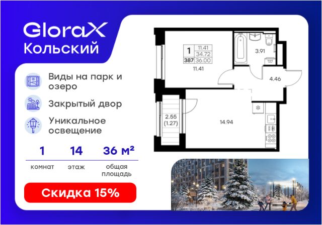 Продается 1-комн. квартира на 6-м этаже в проекте бизнес-класса GloraX Кольский. Общая площадь лота составляет 35,35 кв. м, из которых 13,56 кв. м отведено под жилую и 13,67 кв. м под кухонную зону. Номер квартиры - 298. Преимущества квартиры: угловая, компактная евро-2; вид на озеро; лоджия. - Масштабный проект комфорт-класса в зеленой локации - Лаконичная современная архитектура - Закрытая территория с видеонаблюдением - Квартиры с евро-планировками - Система "Умный дом" - IP-видеонаблюдение, free Wi-fi на территории - Детские разновозрастные площадки - Парк и озеро рядом с домом - Комьюнити-центр для жильцов GloraX Кольский — новая точка притяжения на карте Мурманска. Проект, который рожден на границе городского и природного, современного и вечного, уюта и великой северной силы. Мы создаем совершенно новое пространство для жизни: с видом на Варничное озеро, вблизи Долины Уюта, среди ландшафтов, в которых слышен голос Севера. Отсюда всего 10 минут на транспорте до центра города. Рядом — школы и детские сады, поликлиника, фитнес-центры и торговые комплексы. Поблизости — крупнейшие спортивные объекты Мурманска: легкоатлетический манеж, ледовая арена, горнолыжный склон и маршруты для скандинавской ходьбы. Мы проектировали дома, опираясь не только на эстетику, но и на климат, свет, направление ветра и рельеф. Это архитектура, которая не спорит с ландшафтом, а продолжает его сдержанно, точно и со вкусом. Фасады лаконичны, но выразительны. Материалы выбраны с учетом суровых условий Заполярья: устойчивые к ветру, снегу, перепадам температур. Но при всей практичности они не теряют визуальной легкости. Дом здесь словно вписан в северную линию горизонта — сдержанную, но бесконечно живую. Концепция благоустройства построена на идее "светового компаса": динамичная подсветка реагирует на смену суток и сезонов. Утром она бодрит, вечером — успокаивает, зимой создает акценты, имитируя северное сияние. Функциональность поддержана геопластикой: детские и спортивные площадки расположены на разных уровнях, словно террасы, спускающиеся к парку. Каждая из них спроектирована с учетом возраста, сценария и рельефа. Здесь есть зоны для малышей, подростков, воркаут-комплексы, настольный теннис, места для йоги и тихого отдыха. А в зимние месяцы склоны превращаются в естественные тюбинговые трассы. Но главное — парк. Долина Уюта — это не "рекреационная зона рядом". Это часть жизни, открытая с утра до вечера. Здесь бегают, выгуливают собак, катаются на лыжах и устраивают праздники. Проект вобрал лучшее из многолетнего опыта компании GloraX: лаконичная современная архитектура, закрытые дворы, продуманные сценарии освещения, вдохновленные полярными сутками, экологичный ландшафт и умный подход к комфорту. GloraX Кольский — для тех, кто влюблен в Север. И для тех, кто готов в него влюбиться. Цена указана при 100% оплате или стандартной ипотеке. Узнайте подробности в Отделе продаж. Купить 1-комнатную квартиру в монолитном доме в Мурманске.