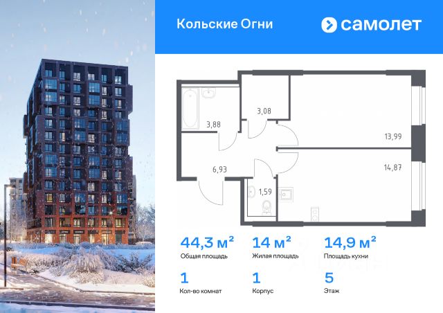 Строим кварталы для жизни с заботой о будущем. Предлагается 1-комнатная квартира комфорт-класса 40,11 кв.м в корпусе 1 на 9 этаже, в ЖК "Кольские Огни" Квартира без отделки. Доступность опции "отделка" и возможность комплектации мебелью и декором уточняйте у застройщика. Приобрести квартиру возможно по специальным акциям от застройщика, с текущими условиями акций можно ознакомиться в блоке "Акций". Цена динамическая и может отличаться, уточняйте актуальность у застройщика. Жилой комплекс "Кольские Огни" будет построен в Мурманской области, в городе Кола. Путь до центра Мурманска будет быстрым — всего 25 минут на машине. Рядом — Поморская набережная, парк, тундровый сад и лес всего в 10 минутах пешком. На первых этажах домов откроются кофейни и магазины, фитнес-зал и салон красоты, аптека, пункты выдачи заказов. Рядом с жилым комплексом работают детский сад, спортивная школа с бассейном и ФОК. Во дворе — озеленение, спортивные площадки, ремонт велосипедов, догхабы. Еще на территории квартала построим паркинг с зарядкой для электромобилей. Корпуса высотой 912 этажей и 1417-этажные башни украшают деревянные панели. На входе в подъезды не будет ступеней и высоких порогов. После прогулки велосипеды и коляски можно оставить в местах хранения. Продуманные планировки от небольших студий до просторных 4-комнатных квартир. Отделка на выбор: готовая, White Box или вариант без нее. Выбирайте варианты без отделки, если хотите реализовать собственные решения. Продам 1-комнатную квартиру в Кольском районе Мурманской области.