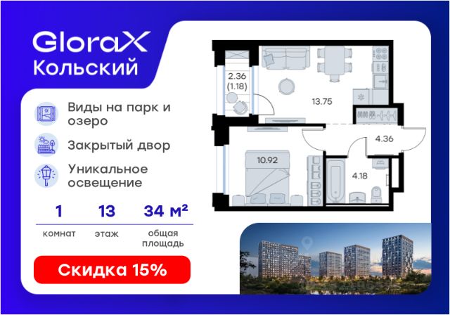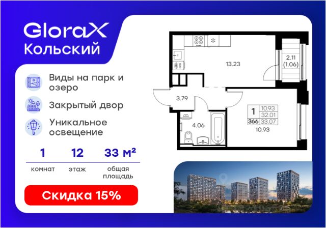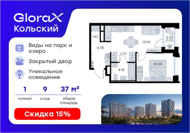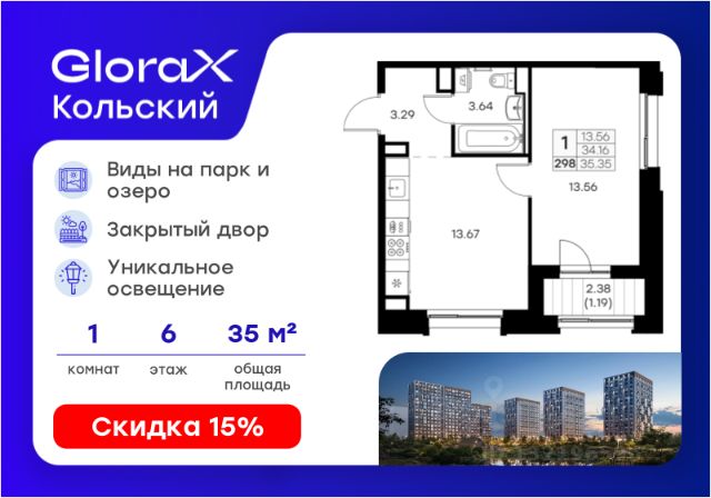 Продается 1-комн. квартира на 5-м этаже в проекте бизнес-класса GloraX Кольский. Общая площадь лота составляет 35,77 кв. м, из которых 10,13 кв. м отведено под жилую и 13,76 кв. м под кухонную зону. Номер квартиры - 42. Преимущества квартиры: угловая, компактная евро-2; лоджия; гардеробная. - Масштабный проект комфорт-класса в зеленой локации - Лаконичная современная архитектура - Закрытая территория с видеонаблюдением - Квартиры с евро-планировками - Система "Умный дом" - IP-видеонаблюдение, free Wi-fi на территории - Детские разновозрастные площадки - Парк и озеро рядом с домом - Комьюнити-центр для жильцов GloraX Кольский — новая точка притяжения на карте Мурманска. Проект, который рожден на границе городского и природного, современного и вечного, уюта и великой северной силы. Мы создаем совершенно новое пространство для жизни: с видом на Варничное озеро, вблизи Долины Уюта, среди ландшафтов, в которых слышен голос Севера. Отсюда всего 10 минут на транспорте до центра города. Рядом — школы и детские сады, поликлиника, фитнес-центры и торговые комплексы. Поблизости — крупнейшие спортивные объекты Мурманска: легкоатлетический манеж, ледовая арена, горнолыжный склон и маршруты для скандинавской ходьбы. Мы проектировали дома, опираясь не только на эстетику, но и на климат, свет, направление ветра и рельеф. Это архитектура, которая не спорит с ландшафтом, а продолжает его сдержанно, точно и со вкусом. Фасады лаконичны, но выразительны. Материалы выбраны с учетом суровых условий Заполярья: устойчивые к ветру, снегу, перепадам температур. Но при всей практичности они не теряют визуальной легкости. Дом здесь словно вписан в северную линию горизонта — сдержанную, но бесконечно живую. Концепция благоустройства построена на идее "светового компаса": динамичная подсветка реагирует на смену суток и сезонов. Утром она бодрит, вечером — успокаивает, зимой создает акценты, имитируя северное сияние. Функциональность поддержана геопластикой: детские и спортивные площадки расположены на разных уровнях, словно террасы, спускающиеся к парку. Каждая из них спроектирована с учетом возраста, сценария и рельефа. Здесь есть зоны для малышей, подростков, воркаут-комплексы, настольный теннис, места для йоги и тихого отдыха. А в зимние месяцы склоны превращаются в естественные тюбинговые трассы. Но главное — парк. Долина Уюта — это не "рекреационная зона рядом". Это часть жизни, открытая с утра до вечера. Здесь бегают, выгуливают собак, катаются на лыжах и устраивают праздники. Проект вобрал лучшее из многолетнего опыта компании GloraX: лаконичная современная архитектура, закрытые дворы, продуманные сценарии освещения, вдохновленные полярными сутками, экологичный ландшафт и умный подход к комфорту. GloraX Кольский — для тех, кто влюблен в Север. И для тех, кто готов в него влюбиться. Цена указана при 100% оплате или стандартной ипотеке. Узнайте подробности в Отделе продаж.