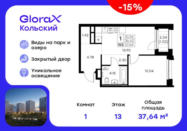 • ✓ В базе Циан 33 1-комнатных квартир в новостройке в Коле