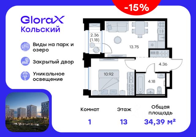 Продается 1-комн. квартира на 5-м этаже в проекте бизнес-класса GloraX Кольский. Общая площадь лота составляет 35,77 кв. м, из которых 10,13 кв. м отведено под жилую и 13,76 кв. м под кухонную зону. Номер квартиры - 42. Преимущества квартиры: угловая, компактная евро-2; лоджия; гардеробная. - Масштабный проект комфорт-класса в зеленой локации - Лаконичная современная архитектура - Закрытая территория с видеонаблюдением - Квартиры с евро-планировками - Система "Умный дом" - IP-видеонаблюдение, free Wi-fi на территории - Детские разновозрастные площадки - Парк и озеро рядом с домом - Комьюнити-центр для жильцов GloraX Кольский — новая точка притяжения на карте Мурманска. Проект, который рожден на границе городского и природного, современного и вечного, уюта и великой северной силы. Мы создаем совершенно новое пространство для жизни: с видом на Варничное озеро, вблизи Долины Уюта, среди ландшафтов, в которых слышен голос Севера. Отсюда всего 10 минут на транспорте до центра города. Рядом — школы и детские сады, поликлиника, фитнес-центры и торговые комплексы. Поблизости — крупнейшие спортивные объекты Мурманска: легкоатлетический манеж, ледовая арена, горнолыжный склон и маршруты для скандинавской ходьбы. Мы проектировали дома, опираясь не только на эстетику, но и на климат, свет, направление ветра и рельеф. Это архитектура, которая не спорит с ландшафтом, а продолжает его сдержанно, точно и со вкусом. Фасады лаконичны, но выразительны. Материалы выбраны с учетом суровых условий Заполярья: устойчивые к ветру, снегу, перепадам температур. Но при всей практичности они не теряют визуальной легкости. Дом здесь словно вписан в северную линию горизонта — сдержанную, но бесконечно живую. Концепция благоустройства построена на идее "светового компаса": динамичная подсветка реагирует на смену суток и сезонов. Утром она бодрит, вечером — успокаивает, зимой создает акценты, имитируя северное сияние. Функциональность поддержана геопластикой: детские и спортивные площадки расположены на разных уровнях, словно террасы, спускающиеся к парку. Каждая из них спроектирована с учетом возраста, сценария и рельефа. Здесь есть зоны для малышей, подростков, воркаут-комплексы, настольный теннис, места для йоги и тихого отдыха. А в зимние месяцы склоны превращаются в естественные тюбинговые трассы. Но главное — парк. Долина Уюта — это не "рекреационная зона рядом". Это часть жизни, открытая с утра до вечера. Здесь бегают, выгуливают собак, катаются на лыжах и устраивают праздники. Проект вобрал лучшее из многолетнего опыта компании GloraX: лаконичная современная архитектура, закрытые дворы, продуманные сценарии освещения, вдохновленные полярными сутками, экологичный ландшафт и умный подход к комфорту. GloraX Кольский — для тех, кто влюблен в Север. И для тех, кто готов в него влюбиться. Цена указана при 100% оплате или стандартной ипотеке. Узнайте подробности в Отделе продаж.