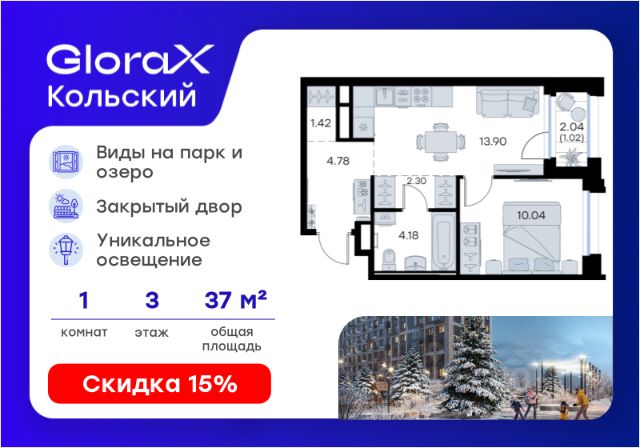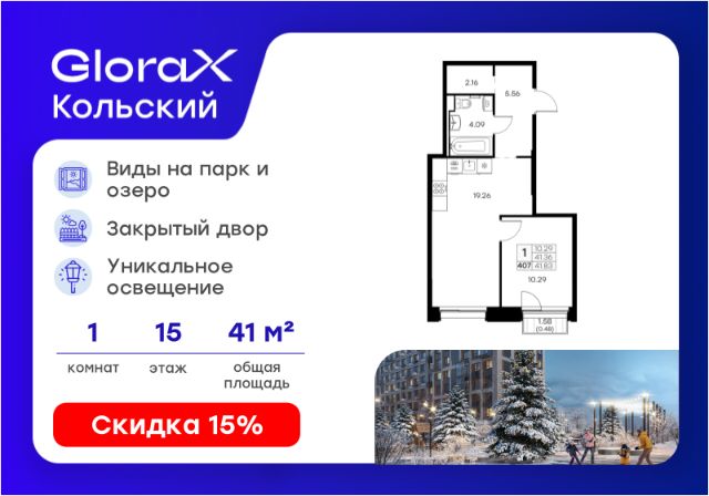 Продаётся 1-комнатная квартира в строящемся доме (Дом 17), срок сдачи: IV-кв. 2026, общей площадью 39.57 кв.м., на 10 этаже. Мурманск называют "Воротами в Арктику". Здесь можно узнать, как устроен первый в мире атомный ледокол, насладиться красотами неповторимой природы - видами на Северный Ледовитый океан, озерами, дикими тундрами, живописными горами и завораживающим северным сиянием ЖК "Северное сияние" - идеальное место для тех, кто хочет жить в уютном и современном районе, наслаждаясь всеми преимуществами комфортной жизни. Два монолитно-каркасных 16-этажных дома выполнены в современном стиле. Архитектура жилого комплекса органично вписана в городской ландшафт. Здесь тщательно продумана планировка каждой квартиры: популярные студии;эргономичные однокомнатные;функциональные двухкомнатные;двухкомнатные квартиры евро-формата.В ЖК "Северное сияние" предусмотрено всё для Вашего комфорта: уютные, благоустроенные дворы без машин;современная детская площадка;спортивная площадка;ландшафтное озеленение;места отдыха;в каждом доме предусмотрено по два просторных бесшумных лифта;помещения для хранения колясок, санок и велосипедов жильцов;удобные парковочные пространства, в том числе наземная двухуровневая автостоянка открытого типа.На первом этаже одного из домов в коммерческих помещениях разместятся кофейни, продуктовые магазины, аптеки и другие объекты торговли и услуг. В шаговой доступности находится всё необходимое для комфортной жизни: остановки общественного транспортапродуктовые магазиныаптекидетские садышколыспортивная школадосуговые центрыЖилой комплекс "Северное сияние" расположен в активном районе города с хорошо развитой инфраструктурой и удобной транспортной развязкой. Расстояние на автомобиле от жилого комплекса "Северное сияние" до: аэропорта (30 мин) - 30 кмжелезнодорожного вокзала (15 мин) - 5,3 кмКольского моста (16 мин) - 5,9 кмМурманск Молла (10 мин) - 4 кмМорского вокзала - (20 мин) - 6,4 кмТоргового порта - (20 мин) - 6,1 кмЖилой комплекс "Северное сияние" - новое современное пространство для жизни от надежного застройщика. Безусловно достойная жизнь. Работаем по ФЗ-214 с использованием эскроу-счетов - 100% гарантия сохранности средств дольщиков. Доступна ипотека, рассрочка, использование маткапитала. 1-комнатная квартира в Мурманске.