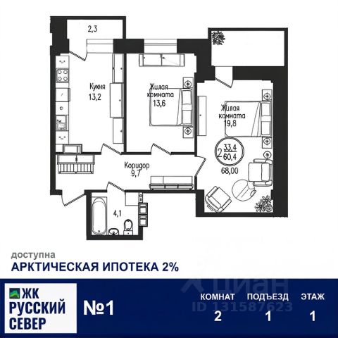 Внимание! Акция! Ограниченный пул квартир со скидками до -15%! Предложение ограничено! Прозрачные условия покупки квартиры по Арктической ипотеке! Первоначальный взнос: 20.1% Ежемесячный платеж со ставкой 2% Никаких скрытых и дополнительных платежей! Выгодное предложение при покупке квартиры с кладовой! Скидка -20% на кладовую! Выгодное предложение по ипотечной программе: Ежемесячный платеж: от 30 467* ₽/мес.. Переплата за 20 лет: от 1 312 080* ₽. *Действуют особые условия. Более точный расчет производится на момент оформления с учетом актуальных условий банков. Квартира двухкомнатная 4 Уникальное предложение для жителей города и области! Параметры квартиры: Количество комнат: 2 Площадь общая: 62.5м² Площадь кухни: 12.6м² Площадь жилая: 53.3м² Лоджии: 2 Подъезд: 1 Этаж: 1 Номер квартиры: 4 Количество квартир ОГРАНИЧЕНО! Окончание строительства - 2 квартал 2026г. Передача ключей в этом году! Больше информации о квартире, ходе строительства ЖК и документации, возможных ипотеках, Вы можете узнать на нашем сайте! ЖК "РУССКИЙ СЕВЕР" - это: 7 жилых этажей - с современными и комфортными лифтами и удобными лестничными пролетами Высота потолков - 3.1м (в черновом варианте) Нежилые помещения - кладовые в цокольном этаже Безопасный и комфортный жилой комплекс для Вас и Ваших детей Закрытая территория - Спортивная и Детская площадка на придомовой территории Благоустроенная и Освещенная территория для прогулок Инфраструктура - Удобное расположение дома в Первомайском районе. Находится за Драматическим Театром Северного флота Выгодные ипотечные программы доступные размещены на нашем сайте Строительство жилого комплекса успешно продвигается! Наш уютный жилой комплекс продолжает активно возводиться, и уже ко второму кварталу 2026 года планируется завершение строительства и введение дома в эксплуатацию. Особенность нашего проекта — комфортная малоэтажность, создающая приятную атмосферу спокойствия и уюта. Мы стремимся обеспечить наших жителей максимальным уровнем комфорта и гармонии с окружающей средой. Местоположение комплекса также выбрано продуманно и идеально подходит для тех, кто ценит тишину и экологичность района. Это уникальный уголок природы с чистым воздухом и живописными видами, однако инфраструктура здесь развита достаточно хорошо, обеспечивая удобство повседневной жизни и доступность всех необходимых услуг. Купить 2-комнатную квартиру на 1 этаже в Мурманской области.