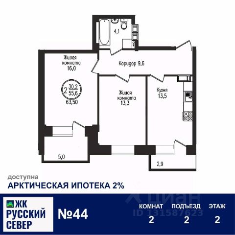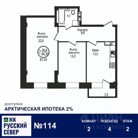 Акция 11-11! Скидки на квартиры -5% Только до 30 ноября 2025г. Это отличная возможность приобрести комфортное жилье на выгодных условиях! Внимание! Акция! Выгодное предложение при покупке квартиры с кладовой! Скидка -20% на кладовую! Выгодное предложение по ипотечной программе: Ежемесячный платеж: от 0* ₽/мес. Переплата за 20 лет: от 0* ₽. *Действуют особые условия. Более точный расчет производится на момент оформления с учетом актуальных условий банков. Квартира двухкомнатная 45 Уникальное предложение для жителей города и области! Параметры квартиры: Количество комнат: 2 Площадь общая: 71.7м² Площадь кухни: 13.3м² Площадь жилая: 64.3м² Лоджии: 2 Подъезд: 2 Этаж: 2 Номер квартиры: 45 Больше информации о квартире, ходе строительства ЖК и документации, возможных ипотеках, Вы можете узнать на нашем сайте! ЖК "РУССКИЙ СЕВЕР" - это: 7 жилых этажей - с современными и комфортными лифтами и удобными лестничными пролетами Высота потолков - 3.1м (в черновом варианте) Нежилые помещения - кладовые в цокольном этаже Безопасный и комфортный жилой комплекс для Вас и Ваших детей Закрытая территория - Спортивная и Детская площадка на придомовой территории Благоустроенная и Освещенная территория для прогулок Инфраструктура - Удобное расположение дома в Первомайском районе. Находится за Драматическим Театром Северного флота Выгодные ипотечные программы доступные размещены на нашем сайте Строительство жилого комплекса успешно продвигается! Наш уютный жилой комплекс продолжает активно возводиться, и уже ко второму кварталу 2026 года планируется завершение строительства и введение дома в эксплуатацию. Особенность нашего проекта — комфортная малоэтажность, создающая приятную атмосферу спокойствия и уюта. Мы стремимся обеспечить наших жителей максимальным уровнем комфорта и гармонии с окружающей средой. Местоположение комплекса также выбрано продуманно и идеально подходит для тех, кто ценит тишину и экологичность района. Это уникальный уголок природы с чистым воздухом и живописными видами, однако инфраструктура здесь развита достаточно хорошо, обеспечивая удобство повседневной жизни и доступность всех необходимых услуг. Купить 2-комнатную квартиру на 2 этаже в Мурманске.