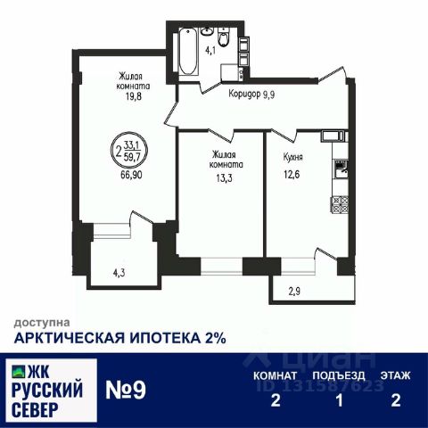 Акция 11-11! Скидки на квартиры -5% Только до 30 ноября 2025г. Это отличная возможность приобрести комфортное жилье на выгодных условиях! Внимание! Акция! Выгодное предложение при покупке квартиры с кладовой! Скидка -20% на кладовую! Выгодное предложение по ипотечной программе: Ежемесячный платеж: от 40 478* ₽/мес.. Переплата за 20 лет: от 1 743 110* ₽. *Действуют особые условия. Более точный расчет производится на момент оформления с учетом актуальных условий банков. Квартира двухкомнатная 45 Уникальное предложение для жителей города и области! Параметры квартиры: Количество комнат: 2 Площадь общая: 71.7м² Площадь кухни: 13.3м² Площадь жилая: 64.3м² Лоджии: 2 Подъезд: 2 Этаж: 2 Номер квартиры: 45 Больше информации о квартире, ходе строительства ЖК и документации, возможных ипотеках, Вы можете узнать на нашем сайте! ЖК "РУССКИЙ СЕВЕР" - это: 7 жилых этажей - с современными и комфортными лифтами и удобными лестничными пролетами Высота потолков - 3.1м (в черновом варианте) Нежилые помещения - кладовые в цокольном этаже Безопасный и комфортный жилой комплекс для Вас и Ваших детей Закрытая территория - Спортивная и Детская площадка на придомовой территории Благоустроенная и Освещенная территория для прогулок Инфраструктура - Удобное расположение дома в Первомайском районе. Находится за Драматическим Театром Северного флота Выгодные ипотечные программы доступные размещены на нашем сайте Строительство жилого комплекса успешно продвигается! Наш уютный жилой комплекс продолжает активно возводиться, и уже ко второму кварталу 2026 года планируется завершение строительства и введение дома в эксплуатацию. Особенность нашего проекта — комфортная малоэтажность, создающая приятную атмосферу спокойствия и уюта. Мы стремимся обеспечить наших жителей максимальным уровнем комфорта и гармонии с окружающей средой. Местоположение комплекса также выбрано продуманно и идеально подходит для тех, кто ценит тишину и экологичность района. Это уникальный уголок природы с чистым воздухом и живописными видами, однако инфраструктура здесь развита достаточно хорошо, обеспечивая удобство повседневной жизни и доступность всех необходимых услуг.