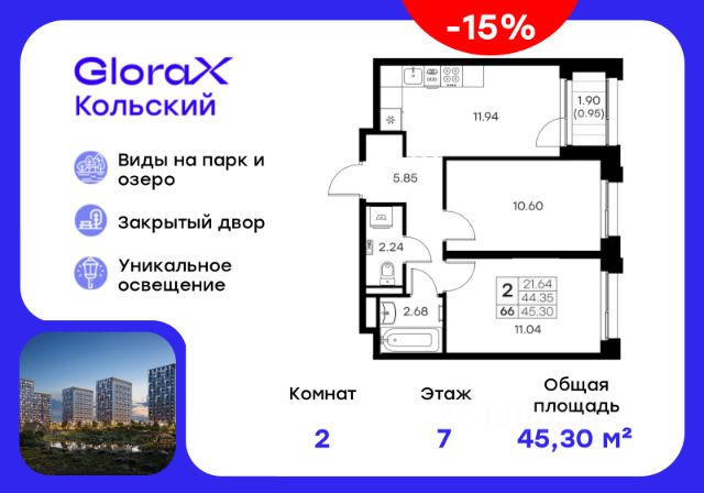 Строим кварталы для жизни с заботой о будущем. Предлагается 2-комнатная квартира комфорт-класса 64,41 кв.м в корпусе 1 на 5 этаже, в ЖК "Кольские Огни" Квартира без отделки. Доступность опции "отделка" и возможность комплектации мебелью и декором уточняйте у застройщика. Приобрести квартиру возможно по специальным акциям от застройщика, с текущими условиями акций можно ознакомиться в блоке "Акций". Цена динамическая и может отличаться, уточняйте актуальность у застройщика. Жилой комплекс "Кольские Огни" будет построен в Мурманской области, в городе Кола. Путь до центра Мурманска будет быстрым — всего 25 минут на машине. Рядом — Поморская набережная, парк, тундровый сад и лес всего в 10 минутах пешком. На первых этажах домов откроются кофейни и магазины, фитнес-зал и салон красоты, аптека, пункты выдачи заказов. Рядом с жилым комплексом работают детский сад, спортивная школа с бассейном и ФОК. Во дворе — озеленение, спортивные площадки, ремонт велосипедов, догхабы. Еще на территории квартала построим паркинг с зарядкой для электромобилей. Корпуса высотой 912 этажей и 1417-этажные башни украшают деревянные панели. На входе в подъезды не будет ступеней и высоких порогов. После прогулки велосипеды и коляски можно оставить в местах хранения. Продуманные планировки от небольших студий до просторных 4-комнатных квартир. Отделка на выбор: готовая, White Box или вариант без нее. Выбирайте варианты без отделки, если хотите реализовать собственные решения.