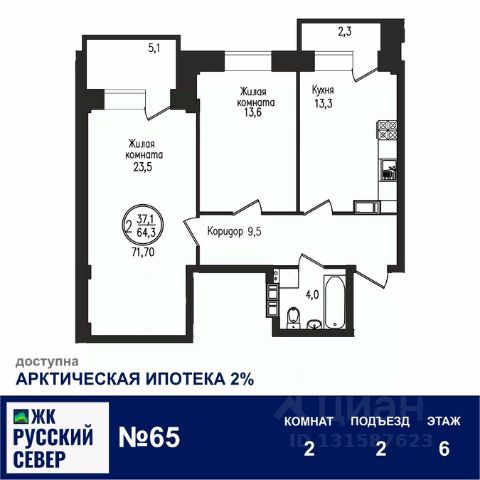 Акция 11-11! Скидки на квартиры -5% Только до 30 ноября 2025г. Это отличная возможность приобрести комфортное жилье на выгодных условиях! Внимание! Акция! Выгодное предложение при покупке квартиры с кладовой! Скидка -20% на кладовую! Выгодное предложение по ипотечной программе: Ежемесячный платеж: от 0* ₽/мес. Переплата за 20 лет: от 0* ₽. *Действуют особые условия. Более точный расчет производится на момент оформления с учетом актуальных условий банков. Квартира двухкомнатная 131 Уникальное предложение для жителей города и области! Параметры квартиры: Количество комнат: 2 Площадь общая: 75.0м² Площадь кухни: 13.2м² Площадь жилая: 68.4м² Лоджии: 2 Кладовка: есть в квартире Подъезд: 4 Этаж: 6 Номер квартиры: 131 Больше информации о квартире, ходе строительства ЖК и документации, возможных ипотеках, Вы можете узнать на нашем сайте! ЖК "РУССКИЙ СЕВЕР" - это: 7 жилых этажей - с современными и комфортными лифтами и удобными лестничными пролетами Высота потолков - 3.1м (в черновом варианте) Нежилые помещения - кладовые в цокольном этаже Безопасный и комфортный жилой комплекс для Вас и Ваших детей Закрытая территория - Спортивная и Детская площадка на придомовой территории Благоустроенная и Освещенная территория для прогулок Инфраструктура - Удобное расположение дома в Первомайском районе. Находится за Драматическим Театром Северного флота Выгодные ипотечные программы доступные размещены на нашем сайте Строительство жилого комплекса успешно продвигается! Наш уютный жилой комплекс продолжает активно возводиться, и уже ко второму кварталу 2026 года планируется завершение строительства и введение дома в эксплуатацию. Особенность нашего проекта — комфортная малоэтажность, создающая приятную атмосферу спокойствия и уюта. Мы стремимся обеспечить наших жителей максимальным уровнем комфорта и гармонии с окружающей средой. Местоположение комплекса также выбрано продуманно и идеально подходит для тех, кто ценит тишину и экологичность района. Это уникальный уголок природы с чистым воздухом и живописными видами, однако инфраструктура здесь развита достаточно хорошо, обеспечивая удобство повседневной жизни и доступность всех необходимых услуг.