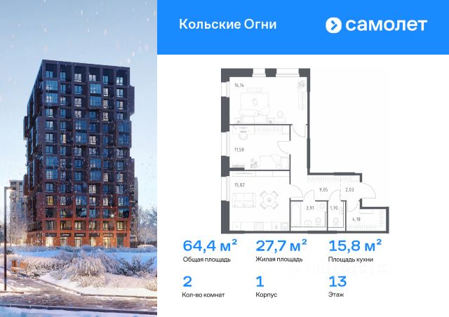 Строим кварталы для жизни с заботой о будущем. Предлагается 2-комнатная квартира комфорт-класса 51,76 кв.м в корпусе 1 на 11 этаже, в ЖК "Кольские Огни" Квартира без отделки. Доступность опции "отделка" и возможность комплектации мебелью и декором уточняйте у застройщика. Приобрести квартиру возможно по специальным акциям от застройщика, с текущими условиями акций можно ознакомиться в блоке "Акций". Цена динамическая и может отличаться, уточняйте актуальность у застройщика. Жилой комплекс "Кольские Огни" будет построен в Мурманской области, в городе Кола. Путь до центра Мурманска будет быстрым — всего 25 минут на машине. Рядом — Поморская набережная, парк, тундровый сад и лес всего в 10 минутах пешком. На первых этажах домов откроются кофейни и магазины, фитнес-зал и салон красоты, аптека, пункты выдачи заказов. Рядом с жилым комплексом работают детский сад, спортивная школа с бассейном и ФОК. Во дворе — озеленение, спортивные площадки, ремонт велосипедов, догхабы. Еще на территории квартала построим паркинг с зарядкой для электромобилей. Корпуса высотой 912 этажей и 1417-этажные башни украшают деревянные панели. На входе в подъезды не будет ступеней и высоких порогов. После прогулки велосипеды и коляски можно оставить в местах хранения. Продуманные планировки от небольших студий до просторных 4-комнатных квартир. Отделка на выбор: готовая, White Box или вариант без нее. Выбирайте варианты без отделки, если хотите реализовать собственные решения.