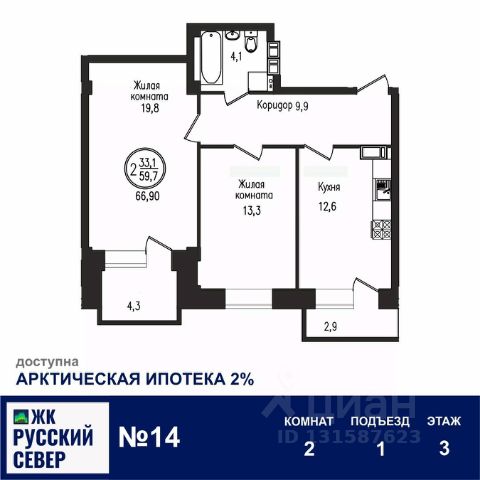 Внимание! Акция! Ограниченный пул квартир со скидками до -15%! Предложение ограничено! Прозрачные условия покупки квартиры по Арктической ипотеке! Первоначальный взнос: 20.1% Ежемесячный платеж со ставкой 2% Никаких скрытых и дополнительных платежей! Выгодное предложение при покупке квартиры с кладовой! Скидка -20% на кладовую! Выгодное предложение по ипотечной программе: Ежемесячный платеж: от 37 938* ₽/мес.. Переплата за 20 лет: от 1 633 821* ₽. *Действуют особые условия. Более точный расчет производится на момент оформления с учетом актуальных условий банков. Квартира двухкомнатная 134 Уникальное предложение для жителей города и области! Параметры квартиры: Количество комнат: 2 Площадь общая: 67.2м² Площадь кухни: 13.5м² Площадь жилая: 64.3м² Лоджии: 2 Подъезд: 4 Этаж: 6 Номер квартиры: 134 Количество квартир ОГРАНИЧЕНО! Окончание строительства - 2 квартал 2026г. Передача ключей в этом году! Больше информации о квартире, ходе строительства ЖК и документации, возможных ипотеках, Вы можете узнать на нашем сайте! ЖК "РУССКИЙ СЕВЕР" - это: 7 жилых этажей - с современными и комфортными лифтами и удобными лестничными пролетами Высота потолков - 3.1м (в черновом варианте) Нежилые помещения - кладовые в цокольном этаже Безопасный и комфортный жилой комплекс для Вас и Ваших детей Закрытая территория - Спортивная и Детская площадка на придомовой территории Благоустроенная и Освещенная территория для прогулок Инфраструктура - Удобное расположение дома в Первомайском районе. Находится за Драматическим Театром Северного флота Выгодные ипотечные программы доступные размещены на нашем сайте Строительство жилого комплекса успешно продвигается! Наш уютный жилой комплекс продолжает активно возводиться, и уже ко второму кварталу 2026 года планируется завершение строительства и введение дома в эксплуатацию. Особенность нашего проекта — комфортная малоэтажность, создающая приятную атмосферу спокойствия и уюта. Мы стремимся обеспечить наших жителей максимальным уровнем комфорта и гармонии с окружающей средой. Местоположение комплекса также выбрано продуманно и идеально подходит для тех, кто ценит тишину и экологичность района. Это уникальный уголок природы с чистым воздухом и живописными видами, однако инфраструктура здесь развита достаточно хорошо, обеспечивая удобство повседневной жизни и доступность всех необходимых услуг.