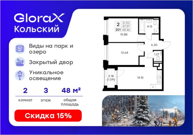 Строим кварталы для жизни с заботой о будущем. Предлагается 3-комнатная квартира комфорт-класса площадью 76.9 кв.м в корпусе 1КВ на 2-м этаже, в жилом комплексе "Кольские Огни". Квартиры без отделки. Доступность опции "отделка" и возможность комплектации мебелью и декором уточняйте у застройщика. Выбирайте свое место для счастливой жизни: от уютной студии до просторной 3-комнатной квартиры. Хотите погрузиться в творческий процесс ремонта? Присмотритесь к вариантам предчистовой отделки. Если хотите сразу отпраздновать новоселье, поручите нам работы по отделке. Мы установим двери, окна и сантехнику, положим ламинат и плитку. На стенах будут обои, которые можно перекрашивать до 8 раз. По вашему желанию мы подготовим в вашей квартире все для комфортной жизни. Откройте дверь своим ключом и пройдитесь по комнатам. Там уже будет мебель, светильники и другие элементы декора. А на кухне бежевых оттенков есть все, чтобы сразу приготовить вкусный ужин для близких. Приобрести квартиры возможно по специальным акциям от застройщика, с текущими условиями акций можно ознакомиться в блоке "Акций". Цена динамическая и может отличаться, уточняйте актуальность у застройщика. Жилой комплекс "Кольские Огни" будет построен в Мурманской области, в городе Кола. Путь до центра Мурманска будет быстрым — всего 25 минут на машине. Рядом — Поморская набережная, парк, тундровый сад и лес всего в 10 минутах пешком. На первых этажах домов откроются кофейни и магазины, фитнес-зал и салон красоты, аптека, пункты выдачи заказов. Рядом с жилым комплексом работают детский сад, спортивная школа с бассейном и ФОК. Во дворе — озеленение, спортивные площадки, ремонт велосипедов, догхабы. Еще на территории квартала построим паркинг с зарядкой для электромобилей. Корпуса высотой 912 этажей и 1417-этажные башни украшают деревянные панели. На входе в подъезды не будет ступеней и высоких порогов. После прогулки велосипеды и коляски можно оставить в местах хранения. Продуманные планировки от небольших студий до просторных 4-комнатных квартир. Отделка на выбор: готовая, White Box или вариант без нее. Выбирайте варианты без отделки, если хотите реализовать собственные решения.