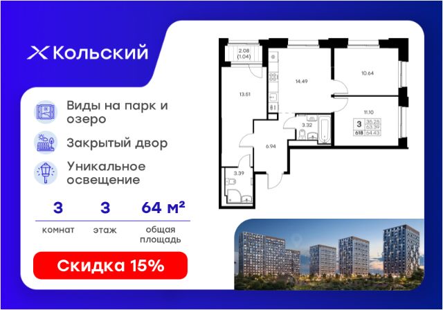 Продается 3-комн. квартира на 9-м этаже в проекте комфорт-класса Кольский. Общая площадь лота составляет 62,82 кв. м, из которых 32,35 кв. м отведено под жилую и 15,90 кв. м под кухонную зону. Номер квартиры - 328. Преимущества квартиры: компактная евро-4, угловая; лоджия. - Масштабный проект комфорт-класса в зеленой локации - Лаконичная современная архитектура - Закрытая территория с видеонаблюдением - Квартиры с евро-планировками - Система "Умный дом" - IP-видеонаблюдение, free Wi-fi на территории - Детские разновозрастные площадки - Парк и озеро рядом с домом - Комьюнити-центр для жильцов Кольский — новая точка притяжения на карте Мурманска. Проект, который рожден на границе городского и природного, современного и вечного, уюта и великой северной силы. Мы создаем совершенно новое пространство для жизни: с видом на Варничное озеро, вблизи Долины Уюта, среди ландшафтов, в которых слышен голос Севера. Отсюда всего 10 минут на транспорте до центра города. Рядом — школы и детские сады, поликлиника, фитнес-центры и торговые комплексы. Поблизости — крупнейшие спортивные объекты Мурманска: легкоатлетический манеж, ледовая арена, горнолыжный склон и маршруты для скандинавской ходьбы. Мы проектировали дома, опираясь не только на эстетику, но и на климат, свет, направление ветра и рельеф. Это архитектура, которая не спорит с ландшафтом, а продолжает его сдержанно, точно и со вкусом. Фасады лаконичны, но выразительны. Материалы выбраны с учетом суровых условий Заполярья: устойчивые к ветру, снегу, перепадам температур. Но при всей практичности они не теряют визуальной легкости. Дом здесь словно вписан в северную линию горизонта — сдержанную, но бесконечно живую. Концепция благоустройства построена на идее "светового компаса": динамичная подсветка реагирует на смену суток и сезонов. Утром она бодрит, вечером — успокаивает, зимой создает акценты, имитируя северное сияние. Функциональность поддержана геопластикой: детские и спортивные площадки расположены на разных уровнях, словно террасы, спускающиеся к парку. Каждая из них спроектирована с учетом возраста, сценария и рельефа. Здесь есть зоны для малышей, подростков, воркаут-комплексы, настольный теннис, места для йоги и тихого отдыха. А в зимние месяцы склоны превращаются в естественные тюбинговые трассы. Но главное — парк. Долина Уюта — это не "рекреационная зона рядом". Это часть жизни, открытая с утра до вечера. Здесь бегают, выгуливают собак, катаются на лыжах и устраивают праздники. Проект вобрал лучшее из многолетнего опыта компании GloraX: лаконичная современная архитектура, закрытые дворы, продуманные сценарии освещения, вдохновленные полярными сутками, экологичный ландшафт и умный подход к комфорту. Кольский — для тех, кто влюблен в Север. И для тех, кто готов в него влюбиться. Цена указана при 100% оплате или стандартной ипотеке. Узнайте подробности в Отделе продаж. Продается 3-комнатная квартира в монолитном доме в Мурманске.