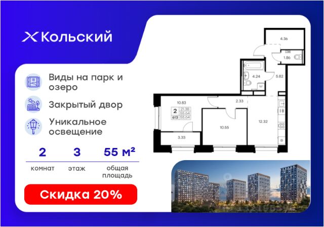 Строим кварталы для жизни с заботой о будущем. Предлагается 3-комнатная квартира комфорт-класса площадью 78.16 кв.м в корпусе 1КВ на 12-м этаже, в жилом комплексе "Кольские Огни". Среди планировок квартала вы наверняка найдете ту, что подойдет вашему образу жизни. В эргономичной студии будет уютно молодой паре, а просторный 4-комнатный вариант подойдет для большой и дружной семьи. Квартиры сдаются без отделки, а значит, вы легко сможете воплотить даже самые смелые дизайнерские идеи. Создавайте свой интерьер мечты и приглашайте друзей на новоселье. Приобрести квартиры возможно по специальным акциям от застройщика, с текущими условиями акций можно ознакомиться в блоке "Акций". Цена динамическая и может отличаться, уточняйте актуальность у застройщика. Жилой комплекс "Кольские Огни" будет построен в Мурманской области, в городе Кола. Путь до центра Мурманска будет быстрым — всего 25 минут на машине. Рядом — Поморская набережная, парк, тундровый сад и лес всего в 10 минутах пешком. На первых этажах домов откроются кофейни и магазины, фитнес-зал и салон красоты, аптека, пункты выдачи заказов. Рядом с жилым комплексом работают детский сад, спортивная школа с бассейном и ФОК. Во дворе — озеленение, спортивные площадки, ремонт велосипедов, догхабы. Еще на территории квартала построим паркинг с зарядкой для электромобилей. Корпуса высотой 912 этажей и 1417-этажные башни украшают деревянные панели. На входе в подъезды не будет ступеней и высоких порогов. После прогулки велосипеды и коляски можно оставить в местах хранения. Продуманные планировки от небольших студий до просторных 4-комнатных квартир. Отделка на выбор: готовая, White Box или вариант без нее. Выбирайте варианты без отделки, если хотите реализовать собственные решения.
