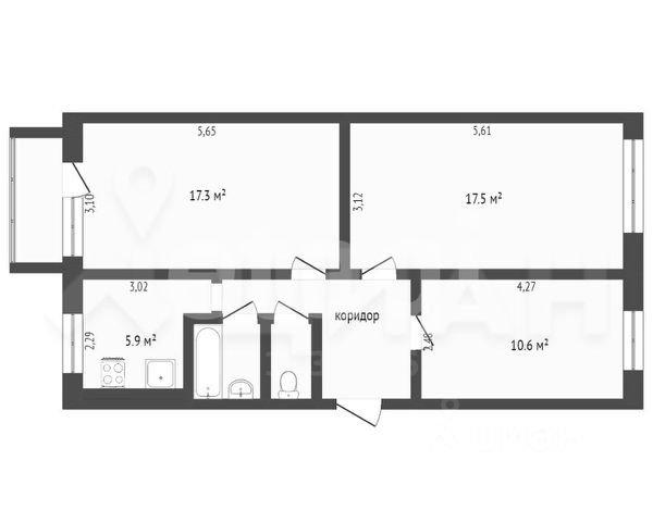 -Балкон на север 6м, балкон на юг 3м.