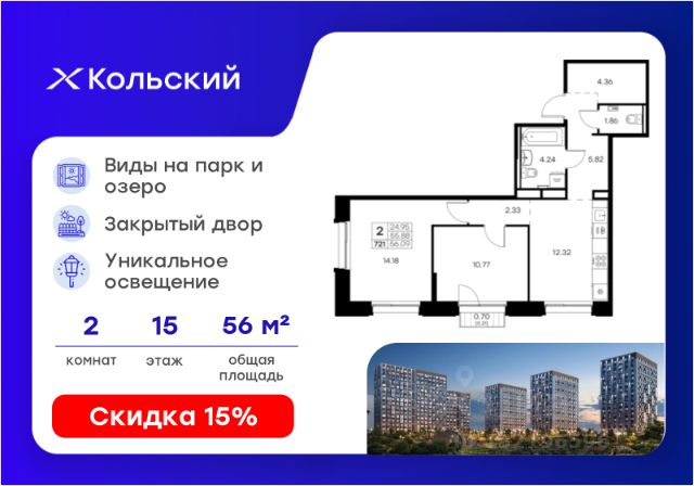 Продается 2-комн. квартира на 3-м этаже в проекте комфорт-класса Кольский. Общая площадь лота составляет 44,61 кв. м, из которых 21,00 кв. м отведено под жилую и 11,92 кв. м под кухонную зону. Номер квартиры - 616. Преимущества квартиры: угловая, евро-2; лоджия. - Масштабный проект комфорт-класса в зеленой локации - Лаконичная современная архитектура - Закрытая территория с видеонаблюдением - Квартиры с евро-планировками - Система "Умный дом" - IP-видеонаблюдение, free Wi-fi на территории - Детские разновозрастные площадки - Парк и озеро рядом с домом - Комьюнити-центр для жильцов Кольский — новая точка притяжения на карте Мурманска. Проект, который рожден на границе городского и природного, современного и вечного, уюта и великой северной силы. Мы создаем совершенно новое пространство для жизни: с видом на Варничное озеро, вблизи Долины Уюта, среди ландшафтов, в которых слышен голос Севера. Отсюда всего 10 минут на транспорте до центра города. Рядом — школы и детские сады, поликлиника, фитнес-центры и торговые комплексы. Поблизости — крупнейшие спортивные объекты Мурманска: легкоатлетический манеж, ледовая арена, горнолыжный склон и маршруты для скандинавской ходьбы. Мы проектировали дома, опираясь не только на эстетику, но и на климат, свет, направление ветра и рельеф. Это архитектура, которая не спорит с ландшафтом, а продолжает его сдержанно, точно и со вкусом. Фасады лаконичны, но выразительны. Материалы выбраны с учетом суровых условий Заполярья: устойчивые к ветру, снегу, перепадам температур. Но при всей практичности они не теряют визуальной легкости. Дом здесь словно вписан в северную линию горизонта — сдержанную, но бесконечно живую. Концепция благоустройства построена на идее "светового компаса": динамичная подсветка реагирует на смену суток и сезонов. Утром она бодрит, вечером — успокаивает, зимой создает акценты, имитируя северное сияние. Функциональность поддержана геопластикой: детские и спортивные площадки расположены на разных уровнях, словно террасы, спускающиеся к парку. Каждая из них спроектирована с учетом возраста, сценария и рельефа. Здесь есть зоны для малышей, подростков, воркаут-комплексы, настольный теннис, места для йоги и тихого отдыха. А в зимние месяцы склоны превращаются в естественные тюбинговые трассы. Но главное — парк. Долина Уюта — это не "рекреационная зона рядом". Это часть жизни, открытая с утра до вечера. Здесь бегают, выгуливают собак, катаются на лыжах и устраивают праздники. Проект вобрал лучшее из многолетнего опыта компании GloraX: лаконичная современная архитектура, закрытые дворы, продуманные сценарии освещения, вдохновленные полярными сутками, экологичный ландшафт и умный подход к комфорту. Кольский — для тех, кто влюблен в Север. И для тех, кто готов в него влюбиться. Цена указана при 100% оплате или стандартной ипотеке. Узнайте подробности в Отделе продаж. Квартира с двумя санузлами в Мурманске.