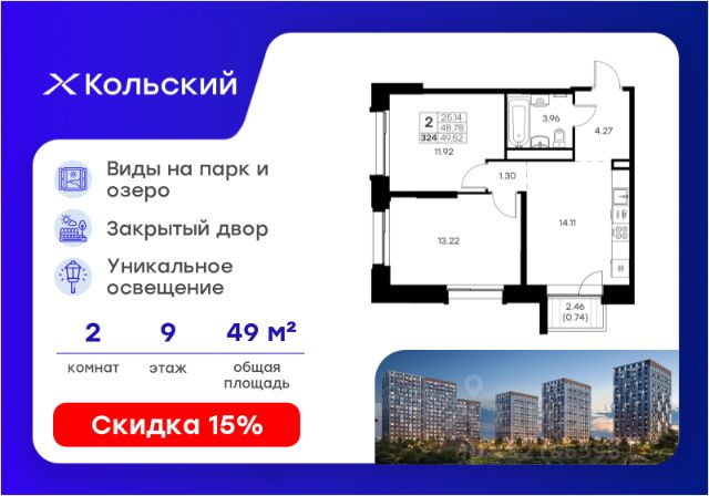 Продается 1-комн. квартира на 9-м этаже в проекте комфорт-класса Кольский. Общая площадь лота составляет 35,77 кв. м, из которых 10,13 кв. м отведено под жилую и 13,76 кв. м под кухонную зону. Номер квартиры - 94. Преимущества квартиры: угловая, компактная евро-2; лоджия; гардеробная. - Масштабный проект комфорт-класса в зеленой локации - Лаконичная современная архитектура - Закрытая территория с видеонаблюдением - Квартиры с евро-планировками - Система "Умный дом" - IP-видеонаблюдение, free Wi-fi на территории - Детские разновозрастные площадки - Парк и озеро рядом с домом - Комьюнити-центр для жильцов Кольский — новая точка притяжения на карте Мурманска. Проект, который рожден на границе городского и природного, современного и вечного, уюта и великой северной силы. Мы создаем совершенно новое пространство для жизни: с видом на Варничное озеро, вблизи Долины Уюта, среди ландшафтов, в которых слышен голос Севера. Отсюда всего 10 минут на транспорте до центра города. Рядом — школы и детские сады, поликлиника, фитнес-центры и торговые комплексы. Поблизости — крупнейшие спортивные объекты Мурманска: легкоатлетический манеж, ледовая арена, горнолыжный склон и маршруты для скандинавской ходьбы. Мы проектировали дома, опираясь не только на эстетику, но и на климат, свет, направление ветра и рельеф. Это архитектура, которая не спорит с ландшафтом, а продолжает его сдержанно, точно и со вкусом. Фасады лаконичны, но выразительны. Материалы выбраны с учетом суровых условий Заполярья: устойчивые к ветру, снегу, перепадам температур. Но при всей практичности они не теряют визуальной легкости. Дом здесь словно вписан в северную линию горизонта — сдержанную, но бесконечно живую. Концепция благоустройства построена на идее "светового компаса": динамичная подсветка реагирует на смену суток и сезонов. Утром она бодрит, вечером — успокаивает, зимой создает акценты, имитируя северное сияние. Функциональность поддержана геопластикой: детские и спортивные площадки расположены на разных уровнях, словно террасы, спускающиеся к парку. Каждая из них спроектирована с учетом возраста, сценария и рельефа. Здесь есть зоны для малышей, подростков, воркаут-комплексы, настольный теннис, места для йоги и тихого отдыха. А в зимние месяцы склоны превращаются в естественные тюбинговые трассы. Но главное — парк. Долина Уюта — это не "рекреационная зона рядом". Это часть жизни, открытая с утра до вечера. Здесь бегают, выгуливают собак, катаются на лыжах и устраивают праздники. Проект вобрал лучшее из многолетнего опыта компании GloraX: лаконичная современная архитектура, закрытые дворы, продуманные сценарии освещения, вдохновленные полярными сутками, экологичный ландшафт и умный подход к комфорту. Кольский — для тех, кто влюблен в Север. И для тех, кто готов в него влюбиться. Цена указана при 100% оплате или стандартной ипотеке. Узнайте подробности в Отделе продаж.