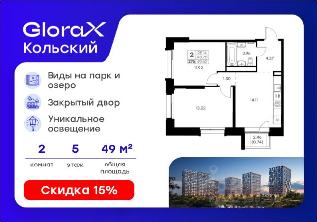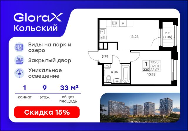 Продается 2-комн. квартира на 7-м этаже в проекте бизнес-класса GloraX Кольский. Общая площадь лота составляет 46,78 кв. м, из которых 21,84 кв. м отведено под жилую и 14,11 кв. м под кухонную зону. Номер квартиры - 300. Преимущества квартиры: компактная евро-3, угловая; лоджия. - Масштабный проект комфорт-класса в зеленой локации - Лаконичная современная архитектура - Закрытая территория с видеонаблюдением - Квартиры с евро-планировками - Система "Умный дом" - IP-видеонаблюдение, free Wi-fi на территории - Детские разновозрастные площадки - Парк и озеро рядом с домом - Комьюнити-центр для жильцов GloraX Кольский — новая точка притяжения на карте Мурманска. Проект, который рожден на границе городского и природного, современного и вечного, уюта и великой северной силы. Мы создаем совершенно новое пространство для жизни: с видом на Варничное озеро, вблизи Долины Уюта, среди ландшафтов, в которых слышен голос Севера. Отсюда всего 10 минут на транспорте до центра города. Рядом — школы и детские сады, поликлиника, фитнес-центры и торговые комплексы. Поблизости — крупнейшие спортивные объекты Мурманска: легкоатлетический манеж, ледовая арена, горнолыжный склон и маршруты для скандинавской ходьбы. Мы проектировали дома, опираясь не только на эстетику, но и на климат, свет, направление ветра и рельеф. Это архитектура, которая не спорит с ландшафтом, а продолжает его сдержанно, точно и со вкусом. Фасады лаконичны, но выразительны. Материалы выбраны с учетом суровых условий Заполярья: устойчивые к ветру, снегу, перепадам температур. Но при всей практичности они не теряют визуальной легкости. Дом здесь словно вписан в северную линию горизонта — сдержанную, но бесконечно живую. Концепция благоустройства построена на идее "светового компаса": динамичная подсветка реагирует на смену суток и сезонов. Утром она бодрит, вечером — успокаивает, зимой создает акценты, имитируя северное сияние. Функциональность поддержана геопластикой: детские и спортивные площадки расположены на разных уровнях, словно террасы, спускающиеся к парку. Каждая из них спроектирована с учетом возраста, сценария и рельефа. Здесь есть зоны для малышей, подростков, воркаут-комплексы, настольный теннис, места для йоги и тихого отдыха. А в зимние месяцы склоны превращаются в естественные тюбинговые трассы. Но главное — парк. Долина Уюта — это не "рекреационная зона рядом". Это часть жизни, открытая с утра до вечера. Здесь бегают, выгуливают собак, катаются на лыжах и устраивают праздники. Проект вобрал лучшее из многолетнего опыта компании GloraX: лаконичная современная архитектура, закрытые дворы, продуманные сценарии освещения, вдохновленные полярными сутками, экологичный ландшафт и умный подход к комфорту. GloraX Кольский — для тех, кто влюблен в Север. И для тех, кто готов в него влюбиться. Цена указана при 100% оплате или стандартной ипотеке. Узнайте подробности в Отделе продаж. Продается квартира в монолитном доме в Мурманской области.