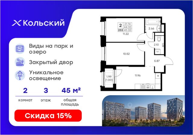 Продается 1-комн. квартира на 3-м этаже в проекте комфорт-класса Кольский. Общая площадь лота составляет 34,39 кв. м, из которых 10,92 кв. м отведено под жилую и 13,75 кв. м под кухонную зону. Номер квартиры - 21. Преимущества квартиры: компактная евро-2; лоджия. - Масштабный проект комфорт-класса в зеленой локации - Лаконичная современная архитектура - Закрытая территория с видеонаблюдением - Квартиры с евро-планировками - Система "Умный дом" - IP-видеонаблюдение, free Wi-fi на территории - Детские разновозрастные площадки - Парк и озеро рядом с домом - Комьюнити-центр для жильцов Кольский — новая точка притяжения на карте Мурманска. Проект, который рожден на границе городского и природного, современного и вечного, уюта и великой северной силы. Мы создаем совершенно новое пространство для жизни: с видом на Варничное озеро, вблизи Долины Уюта, среди ландшафтов, в которых слышен голос Севера. Отсюда всего 10 минут на транспорте до центра города. Рядом — школы и детские сады, поликлиника, фитнес-центры и торговые комплексы. Поблизости — крупнейшие спортивные объекты Мурманска: легкоатлетический манеж, ледовая арена, горнолыжный склон и маршруты для скандинавской ходьбы. Мы проектировали дома, опираясь не только на эстетику, но и на климат, свет, направление ветра и рельеф. Это архитектура, которая не спорит с ландшафтом, а продолжает его сдержанно, точно и со вкусом. Фасады лаконичны, но выразительны. Материалы выбраны с учетом суровых условий Заполярья: устойчивые к ветру, снегу, перепадам температур. Но при всей практичности они не теряют визуальной легкости. Дом здесь словно вписан в северную линию горизонта — сдержанную, но бесконечно живую. Концепция благоустройства построена на идее "светового компаса": динамичная подсветка реагирует на смену суток и сезонов. Утром она бодрит, вечером — успокаивает, зимой создает акценты, имитируя северное сияние. Функциональность поддержана геопластикой: детские и спортивные площадки расположены на разных уровнях, словно террасы, спускающиеся к парку. Каждая из них спроектирована с учетом возраста, сценария и рельефа. Здесь есть зоны для малышей, подростков, воркаут-комплексы, настольный теннис, места для йоги и тихого отдыха. А в зимние месяцы склоны превращаются в естественные тюбинговые трассы. Но главное — парк. Долина Уюта — это не "рекреационная зона рядом". Это часть жизни, открытая с утра до вечера. Здесь бегают, выгуливают собак, катаются на лыжах и устраивают праздники. Проект вобрал лучшее из многолетнего опыта компании GloraX: лаконичная современная архитектура, закрытые дворы, продуманные сценарии освещения, вдохновленные полярными сутками, экологичный ландшафт и умный подход к комфорту. Кольский — для тех, кто влюблен в Север. И для тех, кто готов в него влюбиться. Цена указана при 100% оплате или стандартной ипотеке. Узнайте подробности в Отделе продаж. Продается квартира в монолитном доме в Мурманской области.