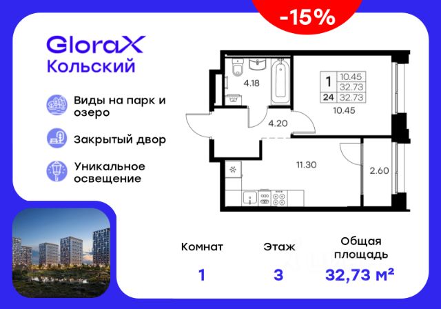 Продается 2-комн. квартира на 11-м этаже в проекте бизнес-класса GloraX Кольский. Общая площадь лота составляет 48,46 кв. м, из которых 21,52 кв. м отведено под жилую и 14,15 кв. м под кухонную зону. Номер квартиры - 233. Старт продаж! Преимущества квартиры: . - Масштабный проект комфорт-класса в зеленой локации - Лаконичная современная архитектура - Закрытая территория с видеонаблюдением - Квартиры с евро-планировками - Система "Умный дом" - IP-видеонаблюдение, free Wi-fi на территории - Детские разновозрастная площадка - Парк и озеро рядом с домом - Комьюнити-центр для жильцов GloraX Кольский — новая точка притяжения на карте Мурманска. Проект, который рожден на границе городского и природного, современного и вечного, уюта и великой северной силы. Мы создаем совершенно новое пространство для жизни: с видом на Варничное озеро, вблизи Долины Уюта, среди ландшафтов, в которых слышен голос Севера. Отсюда всего 10 минут на транспорте до центра города. Рядом — школы и детские сады, поликлиника, фитнес-центры и торговые комплексы. Поблизости — крупнейшие спортивные объекты Мурманска: легкоатлетический манеж, ледовая арена, горнолыжный склон и маршруты для скандинавской ходьбы. Мы проектировали дома, опираясь не только на эстетику, но и на климат, свет, направление ветра и рельеф. Это архитектура, которая не спорит с ландшафтом, а продолжает его сдержанно, точно и со вкусом. Фасады лаконичны, но выразительны. Материалы выбраны с учетом суровых условий Заполярья: устойчивые к ветру, снегу, перепадам температур. Но при всей практичности они не теряют визуальной легкости. Дом здесь словно вписан в северную линию горизонта — сдержанную, но бесконечно живую. Концепция благоустройства построена на идее "светового компаса": динамичная подсветка реагирует на смену суток и сезонов. Утром она бодрит, вечером — успокаивает, зимой создает акценты, имитируя северное сияние. Функциональность поддержана геопластикой: детские и спортивные площадки расположены на разных уровнях, словно террасы, спускающиеся к парку. Каждая из них спроектирована с учетом возраста, сценария и рельефа. Здесь есть зоны для малышей, подростков, воркаут-комплексы, настольный теннис, места для йоги и тихого отдыха. А в зимние месяцы склоны превращаются в естественные тюбинговые трассы. Но главное — парк. Долина Уюта — это не "рекреационная зона рядом". Это часть жизни, открытая с утра до вечера. Здесь бегают, выгуливают собак, катаются на лыжах и устраивают праздники. Проект вобрал лучшее из многолетнего опыта компании GloraX: лаконичная современная архитектура, закрытые дворы, продуманные сценарии освещения, вдохновленные полярными сутками, экологичный ландшафт и умный подход к комфорту. GloraX Кольский — для тех, кто влюблен в Север. И для тех, кто готов в него влюбиться. Цена указана при 100% оплате или стандартной ипотеке. Узнайте подробности в Отделе продаж. Квартира в новостройке в Мурманской области.
