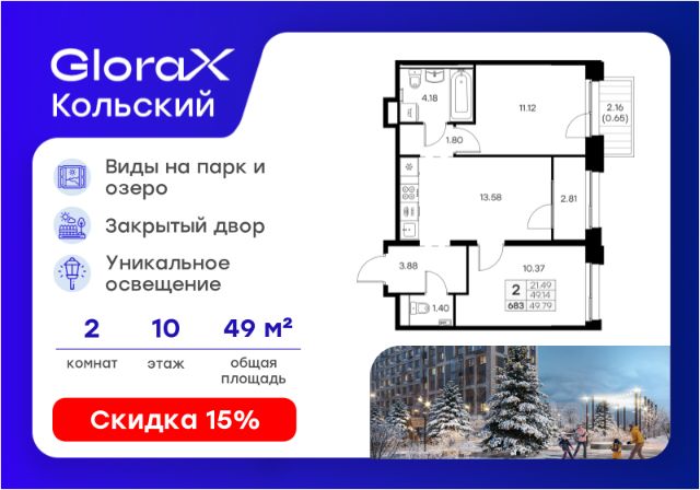 Продается 2-комн. квартира на 12-м этаже в проекте бизнес-класса GloraX Кольский. Общая площадь лота составляет 49,14 кв. м, из которых 21,49 кв. м отведено под жилую и 13,58 кв. м под кухонную зону. Номер квартиры - 701. Преимущества квартиры: компактная евро-3; зимний сад; мастер-спальня. - Масштабный проект комфорт-класса в зеленой локации - Лаконичная современная архитектура - Закрытая территория с видеонаблюдением - Квартиры с евро-планировками - Система "Умный дом" - IP-видеонаблюдение, free Wi-fi на территории - Детские разновозрастные площадки - Парк и озеро рядом с домом - Комьюнити-центр для жильцов GloraX Кольский — новая точка притяжения на карте Мурманска. Проект, который рожден на границе городского и природного, современного и вечного, уюта и великой северной силы. Мы создаем совершенно новое пространство для жизни: с видом на Варничное озеро, вблизи Долины Уюта, среди ландшафтов, в которых слышен голос Севера. Отсюда всего 10 минут на транспорте до центра города. Рядом — школы и детские сады, поликлиника, фитнес-центры и торговые комплексы. Поблизости — крупнейшие спортивные объекты Мурманска: легкоатлетический манеж, ледовая арена, горнолыжный склон и маршруты для скандинавской ходьбы. Мы проектировали дома, опираясь не только на эстетику, но и на климат, свет, направление ветра и рельеф. Это архитектура, которая не спорит с ландшафтом, а продолжает его сдержанно, точно и со вкусом. Фасады лаконичны, но выразительны. Материалы выбраны с учетом суровых условий Заполярья: устойчивые к ветру, снегу, перепадам температур. Но при всей практичности они не теряют визуальной легкости. Дом здесь словно вписан в северную линию горизонта — сдержанную, но бесконечно живую. Концепция благоустройства построена на идее "светового компаса": динамичная подсветка реагирует на смену суток и сезонов. Утром она бодрит, вечером — успокаивает, зимой создает акценты, имитируя северное сияние. Функциональность поддержана геопластикой: детские и спортивные площадки расположены на разных уровнях, словно террасы, спускающиеся к парку. Каждая из них спроектирована с учетом возраста, сценария и рельефа. Здесь есть зоны для малышей, подростков, воркаут-комплексы, настольный теннис, места для йоги и тихого отдыха. А в зимние месяцы склоны превращаются в естественные тюбинговые трассы. Но главное — парк. Долина Уюта — это не "рекреационная зона рядом". Это часть жизни, открытая с утра до вечера. Здесь бегают, выгуливают собак, катаются на лыжах и устраивают праздники. Проект вобрал лучшее из многолетнего опыта компании GloraX: лаконичная современная архитектура, закрытые дворы, продуманные сценарии освещения, вдохновленные полярными сутками, экологичный ландшафт и умный подход к комфорту. GloraX Кольский — для тех, кто влюблен в Север. И для тех, кто готов в него влюбиться. Цена указана при 100% оплате или стандартной ипотеке. Узнайте подробности в Отделе продаж.