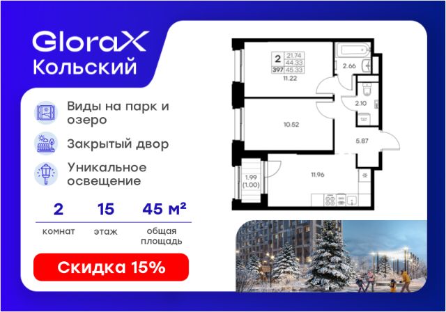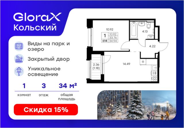 Строим кварталы для жизни с заботой о будущем. Предлагается студия комфорт-класса площадью 28.85 кв.м в корпусе 3КВ на 13-м этаже, в жилом комплексе "Кольские Огни". Квартиры без отделки. Доступность опции "отделка" и возможность комплектации мебелью и декором уточняйте у застройщика. Выбирайте свое место для счастливой жизни: от уютной студии до просторной 3-комнатной квартиры. Хотите погрузиться в творческий процесс ремонта? Присмотритесь к вариантам предчистовой отделки. Если хотите сразу отпраздновать новоселье, поручите нам работы по отделке. Мы установим двери, окна и сантехнику, положим ламинат и плитку. На стенах будут обои, которые можно перекрашивать до 8 раз. По вашему желанию мы подготовим в вашей квартире все для комфортной жизни. Откройте дверь своим ключом и пройдитесь по комнатам. Там уже будет мебель, светильники и другие элементы декора. А на кухне бежевых оттенков есть все, чтобы сразу приготовить вкусный ужин для близких. Приобрести квартиры возможно по специальным акциям от застройщика, с текущими условиями акций можно ознакомиться в блоке "Акций". Цена динамическая и может отличаться, уточняйте актуальность у застройщика. Жилой комплекс "Кольские Огни" будет построен в Мурманской области, в городе Кола. Путь до центра Мурманска будет быстрым — всего 25 минут на машине. Рядом — Поморская набережная, парк, тундровый сад и лес всего в 10 минутах пешком. На первых этажах домов откроются кофейни и магазины, фитнес-зал и салон красоты, аптека, пункты выдачи заказов. Рядом с жилым комплексом работают детский сад, спортивная школа с бассейном и ФОК. Во дворе — озеленение, спортивные площадки, ремонт велосипедов, догхабы. Еще на территории квартала построим паркинг с зарядкой для электромобилей. Корпуса высотой 912 этажей и 1417-этажные башни украшают деревянные панели. На входе в подъезды не будет ступеней и высоких порогов. После прогулки велосипеды и коляски можно оставить в местах хранения. Продуманные планировки от небольших студий до просторных 4-комнатных квартир. Отделка на выбор: готовая, White Box или вариант без нее. Выбирайте варианты без отделки, если хотите реализовать собственные решения.
