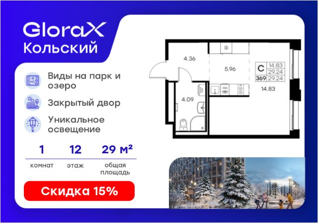 Продается квартира-студия на 2-м этаже в проекте бизнес-класса GloraX Кольский. Общая площадь лота составляет 29,30 кв. м, из которых 14,78 кв. м отведено под жилую и 5,96 кв. м под кухонную зону. Номер квартиры - 4. Старт продаж! Преимущества квартиры: зонируемая студия. - Масштабный проект комфорт-класса в зеленой локации - Лаконичная современная архитектура - Закрытая территория с видеонаблюдением - Квартиры с евро-планировками - Система "Умный дом" - IP-видеонаблюдение, free Wi-fi на территории - Детские разновозрастные площадки - Парк и озеро рядом с домом - Комьюнити-центр для жильцов GloraX Кольский — новая точка притяжения на карте Мурманска. Проект, который рожден на границе городского и природного, современного и вечного, уюта и великой северной силы. Мы создаем совершенно новое пространство для жизни: с видом на Варничное озеро, вблизи Долины Уюта, среди ландшафтов, в которых слышен голос Севера. Отсюда всего 10 минут на транспорте до центра города. Рядом — школы и детские сады, поликлиника, фитнес-центры и торговые комплексы. Поблизости — крупнейшие спортивные объекты Мурманска: легкоатлетический манеж, ледовая арена, горнолыжный склон и маршруты для скандинавской ходьбы. Мы проектировали дома, опираясь не только на эстетику, но и на климат, свет, направление ветра и рельеф. Это архитектура, которая не спорит с ландшафтом, а продолжает его сдержанно, точно и со вкусом. Фасады лаконичны, но выразительны. Материалы выбраны с учетом суровых условий Заполярья: устойчивые к ветру, снегу, перепадам температур. Но при всей практичности они не теряют визуальной легкости. Дом здесь словно вписан в северную линию горизонта — сдержанную, но бесконечно живую. Концепция благоустройства построена на идее "светового компаса": динамичная подсветка реагирует на смену суток и сезонов. Утром она бодрит, вечером — успокаивает, зимой создает акценты, имитируя северное сияние. Функциональность поддержана геопластикой: детские и спортивные площадки расположены на разных уровнях, словно террасы, спускающиеся к парку. Каждая из них спроектирована с учетом возраста, сценария и рельефа. Здесь есть зоны для малышей, подростков, воркаут-комплексы, настольный теннис, места для йоги и тихого отдыха. А в зимние месяцы склоны превращаются в естественные тюбинговые трассы. Но главное — парк. Долина Уюта — это не "рекреационная зона рядом". Это часть жизни, открытая с утра до вечера. Здесь бегают, выгуливают собак, катаются на лыжах и устраивают праздники. Проект вобрал лучшее из многолетнего опыта компании GloraX: лаконичная современная архитектура, закрытые дворы, продуманные сценарии освещения, вдохновленные полярными сутками, экологичный ландшафт и умный подход к комфорту. GloraX Кольский — для тех, кто влюблен в Север. И для тех, кто готов в него влюбиться. Цена указана при 100% оплате или стандартной ипотеке. Узнайте подробности в Отделе продаж.
