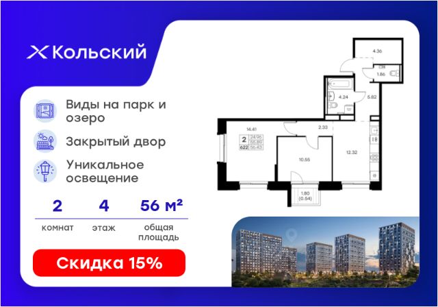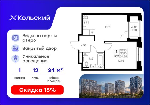 Строим кварталы для жизни с заботой о будущем. Предлагается студия комфорт-класса площадью 28.59 кв.м в корпусе 3КВ на 11-м этаже, в жилом комплексе "Кольские Огни". Среди планировок квартала вы наверняка найдете ту, что подойдет вашему образу жизни. В эргономичной студии будет уютно молодой паре, а просторный 4-комнатный вариант подойдет для большой и дружной семьи. Квартиры сдаются без отделки, а значит, вы легко сможете воплотить даже самые смелые дизайнерские идеи. Создавайте свой интерьер мечты и приглашайте друзей на новоселье. Приобрести квартиры возможно по специальным акциям от застройщика, с текущими условиями акций можно ознакомиться в блоке "Акций". Цена динамическая и может отличаться, уточняйте актуальность у застройщика. Жилой комплекс "Кольские Огни" будет построен в Мурманской области, в городе Кола. Путь до центра Мурманска будет быстрым — всего 25 минут на машине. Рядом — Поморская набережная, парк, тундровый сад и лес всего в 10 минутах пешком. На первых этажах домов откроются кофейни и магазины, фитнес-зал и салон красоты, аптека, пункты выдачи заказов. Рядом с жилым комплексом работают детский сад, спортивная школа с бассейном и ФОК. Во дворе — озеленение, спортивные площадки, ремонт велосипедов, догхабы. Еще на территории квартала построим паркинг с зарядкой для электромобилей. Корпуса высотой 912 этажей и 1417-этажные башни украшают деревянные панели. На входе в подъезды не будет ступеней и высоких порогов. После прогулки велосипеды и коляски можно оставить в местах хранения. Продуманные планировки от небольших студий до просторных 4-комнатных квартир. Отделка на выбор: готовая, White Box или вариант без нее. Выбирайте варианты без отделки, если хотите реализовать собственные решения.