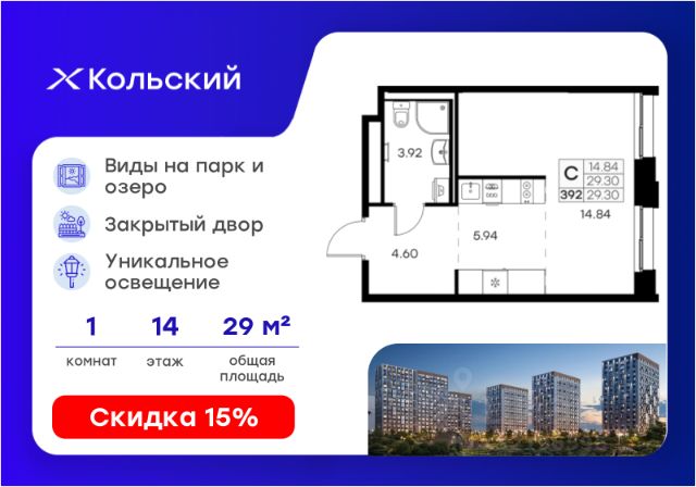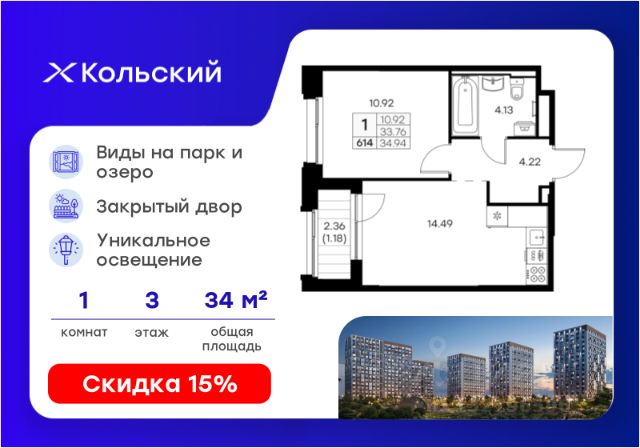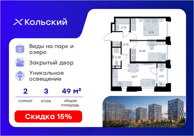 Продается 2-комн. квартира на 3-м этаже в проекте комфорт-класса Кольский. Общая площадь лота составляет 45,33 кв. м, из которых 21,74 кв. м отведено под жилую и 11,96 кв. м под кухонную зону. Номер квартиры - 253. Преимущества квартиры: компактная 2 к.кв.; лоджия. - Масштабный проект комфорт-класса в зеленой локации - Лаконичная современная архитектура - Закрытая территория с видеонаблюдением - Квартиры с евро-планировками - Система "Умный дом" - IP-видеонаблюдение, free Wi-fi на территории - Детские разновозрастные площадки - Парк и озеро рядом с домом - Комьюнити-центр для жильцов Кольский — новая точка притяжения на карте Мурманска. Проект, который рожден на границе городского и природного, современного и вечного, уюта и великой северной силы. Мы создаем совершенно новое пространство для жизни: с видом на Варничное озеро, вблизи Долины Уюта, среди ландшафтов, в которых слышен голос Севера. Отсюда всего 10 минут на транспорте до центра города. Рядом — школы и детские сады, поликлиника, фитнес-центры и торговые комплексы. Поблизости — крупнейшие спортивные объекты Мурманска: легкоатлетический манеж, ледовая арена, горнолыжный склон и маршруты для скандинавской ходьбы. Мы проектировали дома, опираясь не только на эстетику, но и на климат, свет, направление ветра и рельеф. Это архитектура, которая не спорит с ландшафтом, а продолжает его сдержанно, точно и со вкусом. Фасады лаконичны, но выразительны. Материалы выбраны с учетом суровых условий Заполярья: устойчивые к ветру, снегу, перепадам температур. Но при всей практичности они не теряют визуальной легкости. Дом здесь словно вписан в северную линию горизонта — сдержанную, но бесконечно живую. Концепция благоустройства построена на идее "светового компаса": динамичная подсветка реагирует на смену суток и сезонов. Утром она бодрит, вечером — успокаивает, зимой создает акценты, имитируя северное сияние. Функциональность поддержана геопластикой: детские и спортивные площадки расположены на разных уровнях, словно террасы, спускающиеся к парку. Каждая из них спроектирована с учетом возраста, сценария и рельефа. Здесь есть зоны для малышей, подростков, воркаут-комплексы, настольный теннис, места для йоги и тихого отдыха. А в зимние месяцы склоны превращаются в естественные тюбинговые трассы. Но главное — парк. Долина Уюта — это не "рекреационная зона рядом". Это часть жизни, открытая с утра до вечера. Здесь бегают, выгуливают собак, катаются на лыжах и устраивают праздники. Проект вобрал лучшее из многолетнего опыта компании GloraX: лаконичная современная архитектура, закрытые дворы, продуманные сценарии освещения, вдохновленные полярными сутками, экологичный ландшафт и умный подход к комфорту. Кольский — для тех, кто влюблен в Север. И для тех, кто готов в него влюбиться. Цена указана при 100% оплате или стандартной ипотеке. Узнайте подробности в Отделе продаж.