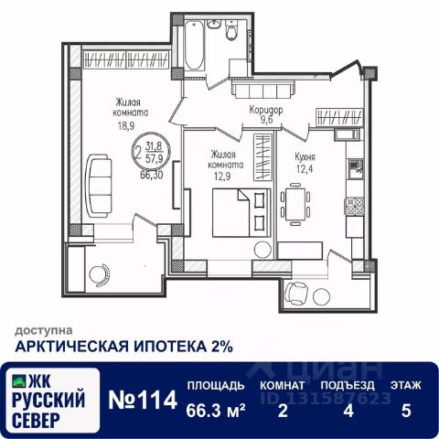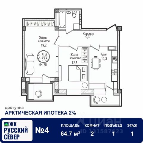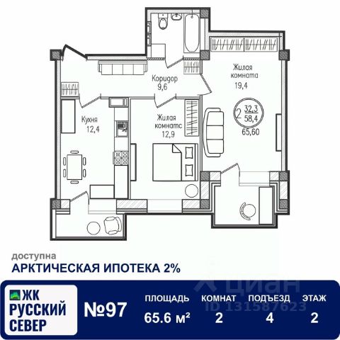 Акция от застройщика ЖК РУССКИЙ СЕВЕР! Скидки на квартиры до -7% Только до 31 октября 2025г. Это отличная возможность приобрести комфортное жилье на выгодных условиях! Внимание! Акция! Выгодное предложение при покупке квартиры с кладовой! Скидка -20% на кладовую! Выгодное предложение по ипотечной программе: Ежемесячный платеж: от 30 467* ₽/мес. Переплата за 20 лет: от 1 312 080* ₽. *Действуют особые условия. Более точный расчет производится на момент оформления с учетом актуальных условий банков. Квартира двухкомнатная 102 Уникальное предложение для жителей города и области! Параметры квартиры: Количество комнат: 2 Площадь общая: 65.6м² Площадь кухни: 12.4м² Площадь жилая: 32.3м² Лоджии: 2 лоджии Подъезд: 4 Этаж: 3 Номер квартиры: 102 Больше информации о квартире, ходе строительства ЖК и документации, возможных ипотеках, Вы можете узнать на нашем сайте! ЖК "РУССКИЙ СЕВЕР" - это: 7 жилых этажей - с современными и комфортными лифтами и удобными лестничными пролетами Высота потолков - 3.1м (в черновом варианте) Нежилые помещения - кладовые в цокольном этаже Безопасный и комфортный жилой комплекс для Вас и Ваших детей Закрытая территория - Спортивная и Детская площадка на придомовой территории Благоустроенная и Освещенная территория для прогулок Инфраструктура - Удобное расположение дома в Первомайском районе. Находится за Драматическим Театром Северного флота Выгодные ипотечные программы доступные размещены на нашем сайте Строительство жилого комплекса успешно продвигается! Наш уютный жилой комплекс продолжает активно возводиться, и уже ко второму кварталу 2026 года планируется завершение строительства и введение дома в эксплуатацию. Особенность нашего проекта — комфортная малоэтажность, создающая приятную атмосферу спокойствия и уюта. Мы стремимся обеспечить наших жителей максимальным уровнем комфорта и гармонии с окружающей средой. Местоположение комплекса также выбрано продуманно и идеально подходит для тех, кто ценит тишину и экологичность района. Это уникальный уголок природы с чистым воздухом и живописными видами, однако инфраструктура здесь развита достаточно хорошо, обеспечивая удобство повседневной жизни и доступность всех необходимых услуг.