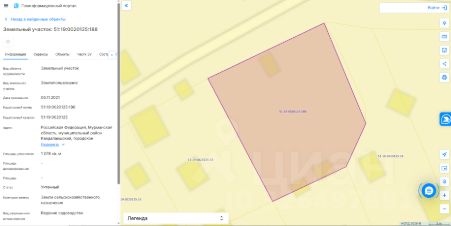 Земельный участок с кадастровым номером 51:19:0020125:188 площадь 1078 по адресу Российская Федерация, Мурманская область, муниципальный район Кандалакшский, городское поселение Кандалакша, село Федосеевка, территория СТ Дюны