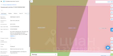 Земельный участок с кадастровым номером 51:28:0100008:590 площадь 1200 по адресу Российская Федерация, Мурманская область, муниципальный округ город Полярные Зори, населенный пункт Зашеек