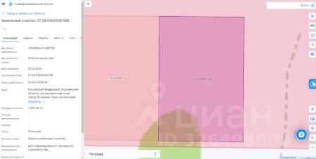 Земельный участок с кадастровым номером 51:28:0100008:586 площадь 1200 по адресу Российская Федерация, Мурманская область, муниципальный округ город Полярные Зори, населенный пункт Зашеек