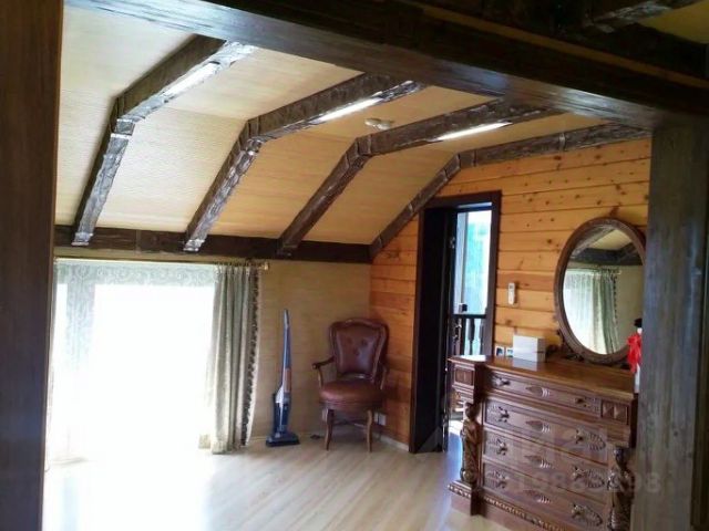 Внутренняя отделка: Блок-хаус с использованием элементов декора из натурального дерева, кирпича, камня, штукатурки. Окна: Пластиковые (золотой дуб, 2ух камерные) Полы: Керамическая плитка; ламинат. Лестница: натуральное дерево (орех).