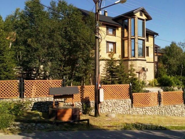 Все строения соединяются дорожками, лестницами из натурального дерева. Вход к дому и парковочные места выложены брусчаткой. На территории парковки расположен небольшой домик для охраны. Забор деревянно-металлический с элементами каменного декора. Ворота распашные, автоматические. Современный жилой комплекс имеет свой стиль, который производит впечатление основательности и надежности, безопасности и особого комфорта. Создана неповторимая атмосфера домашнего очага и уюта. Владелец постарался сохранить первозданный вид участка, великолепный ландшафтный дизайн. Живописная природа: ели, кедры, лиственницы, березы, а так же кусты сирени, красной и черной смородины, малины.