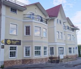 - Большая асфальтированная площадка для транспорта перед зданием