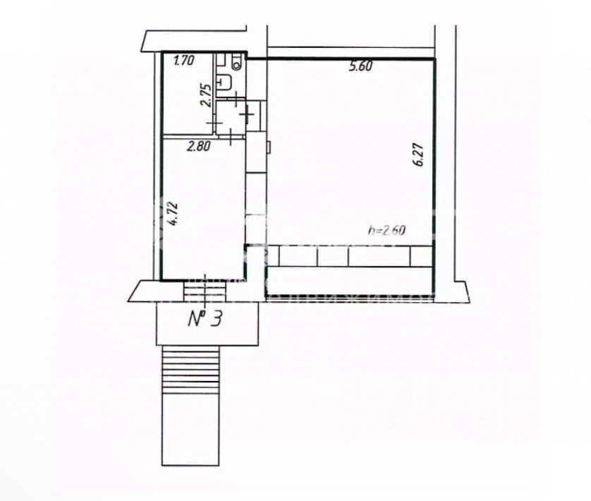 Высота потолка: h= 2,7 м;