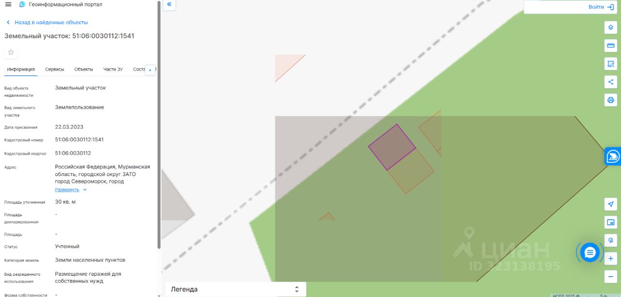 Земельный участок с кадастровым номером 51:06:0030112:1541, площадь 30, по адресу Российская Федерация, Мурманская область, городской округ ЗАТО город Североморск, город Североморск, улица Гаджиева