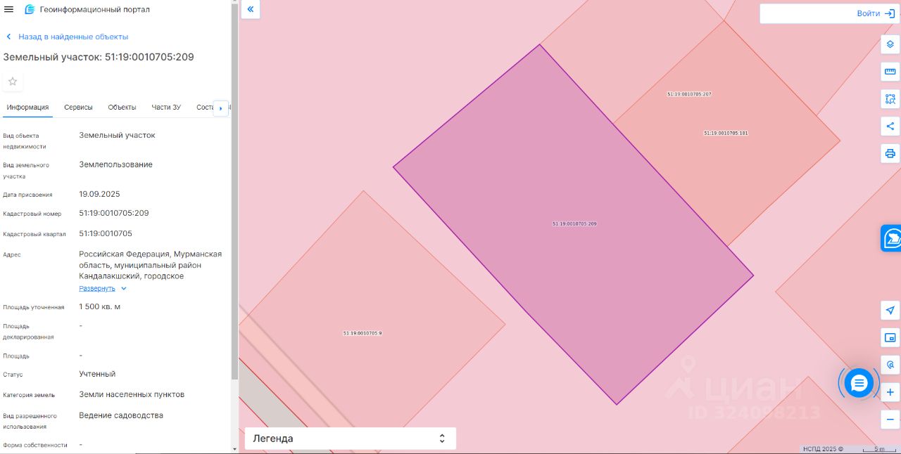 Земельный участок с кадастровым номером 51:19:0010705:209 площадь 1500 по адресу Российская Федерация, Мурманская область, муниципальный район Кандалакшский, городское поселение Кандалакша, населенный пункт Нивский