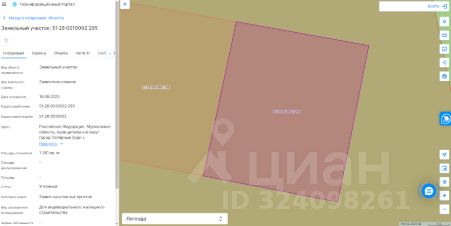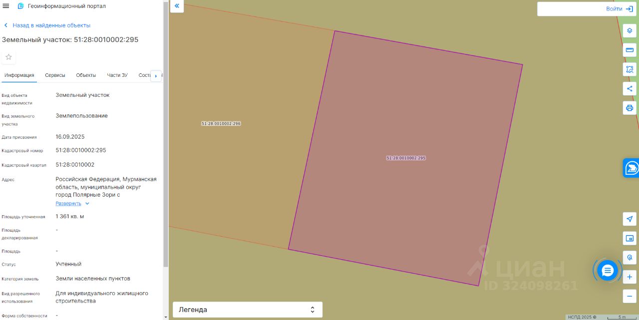 Земельный участок с кадастровым номером 51:28:0010002:295 площадь 1361 по адресу Российская Федерация, Мурманская область, муниципальный округ город Полярные Зори с подведомственной территорией, город Полярные Зори