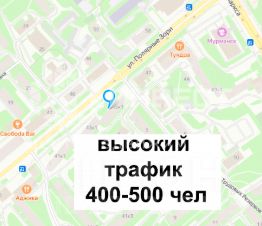 Большой авто и пеший трафик, остановки общественного транспорта в пешей доступности, густонаселённый спальный район.