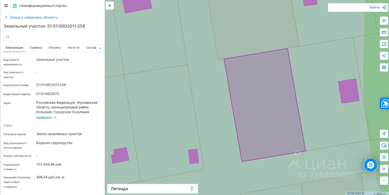 Земельный участок с кадастровым номером 51:01:0603011:258 площадь 1412 по адресу Российская Федерация, Мурманская область, муниципальный район Кольский, городское поселение Верхнетуломский, поселок городского типа Верхнетуломский, улица Советская