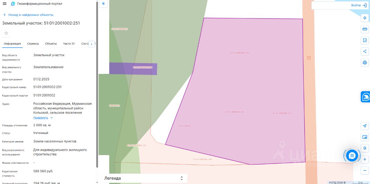 Земельный участок с кадастровым номером 51:01:2001002:251 площадь 2000 по адресу Российская Федерация, Мурманская область, муниципальный район Кольский, сельское поселение Пушной, село Пулозеро