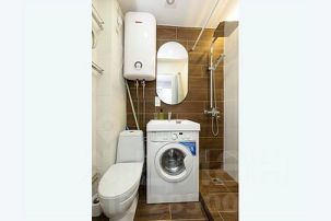 ????В ванной комнате: гигиенические принадлежности (шампунь, гель для душа, мыло, ватные диски и палочки), фен. Стиральная машина, утюг, гладильная доска и другие приятные мелочи.
