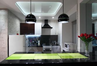 Кухня укомплектована посудой для приготовления и приема пищи, а также бытовой техникой.