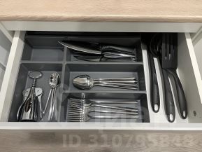 - Кухонный гарнитур с необходимой техникой и аксессуарами (электрический чайник, плита, набор столовых принадлежностей, микроволновая печь, холодильник);