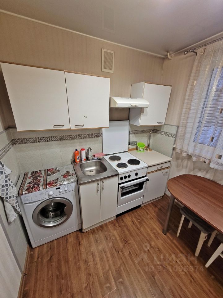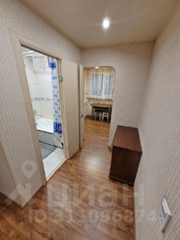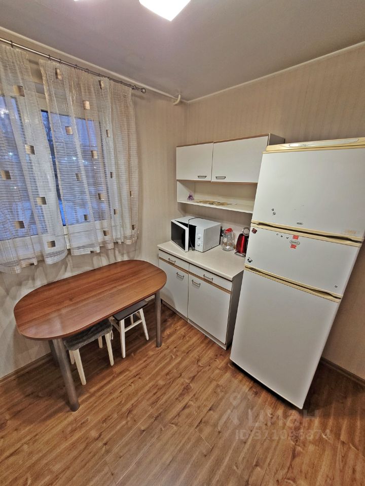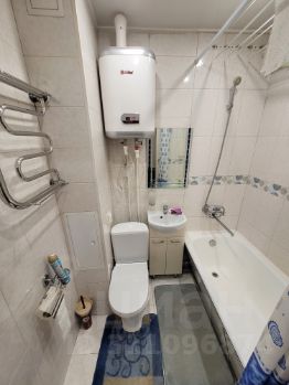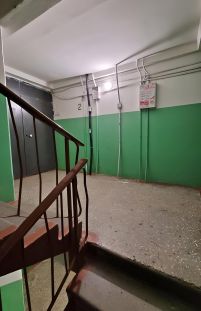 Общая площадь квартиры 34 кв.м, комната 18, кухня - 9, застекленный балкон. Хорошее жилое состояние квартиры, санузел совмещенный - кафель, ванная, водонагреватель, в прихожей и кухне на полу ламинат, комната в жилом состоянии (есть кровать и тахта), в коридоре установлен шкаф-купе для вещей. В квартире есть все необходимое для проживания. Окна квартиры выходят во двор - нет шума от проспекта.