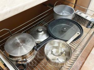 На кухне: чай, сахар, соль, посуда, вся необходимая техника для приготовления и хранения пищи.